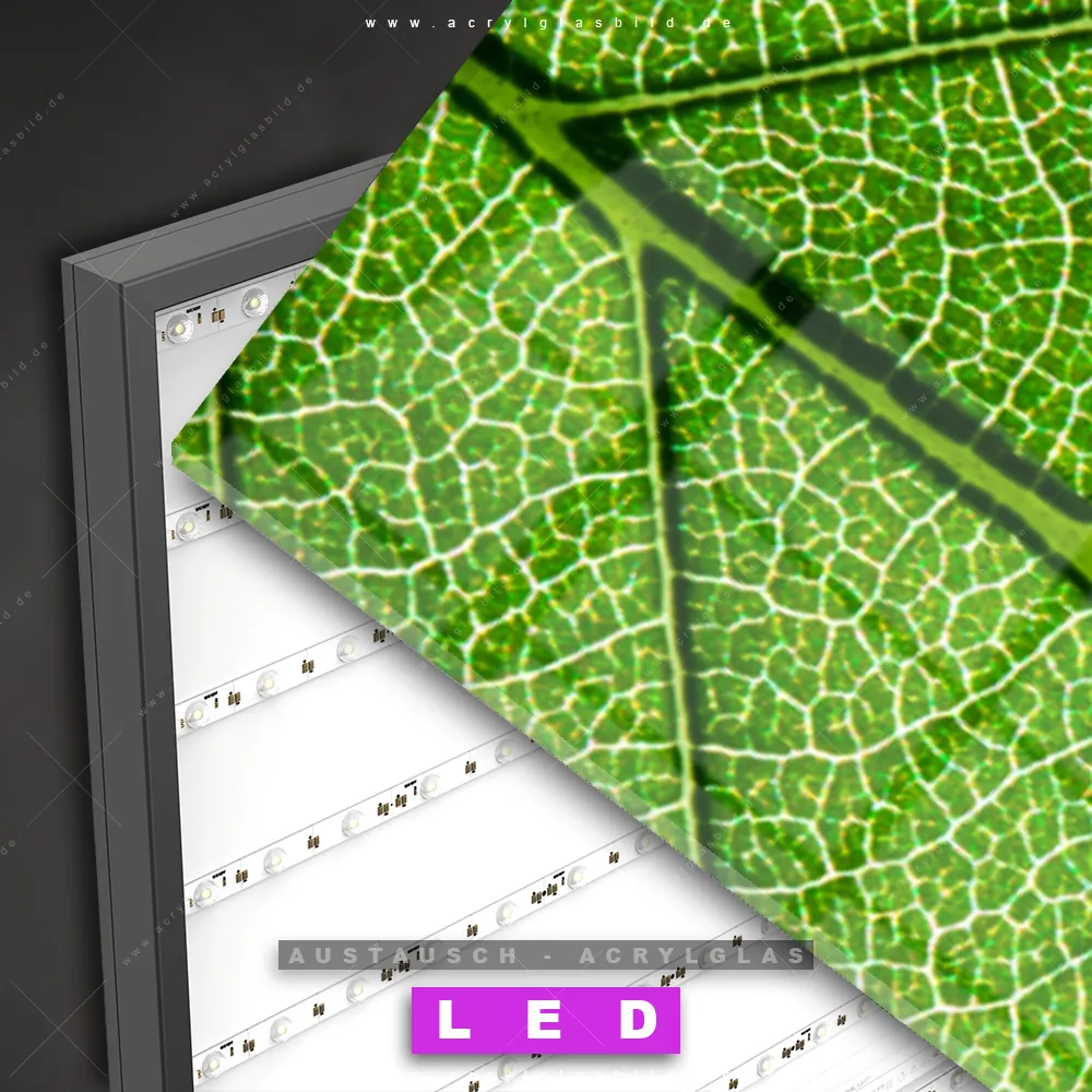 Begriffe wie Natur, Wald, Baum, Blatt, Botanik, Pflanzen haben dich auf der Suche nach deinem neuen Austausch-Acrylglasbild inspiriert? Dann sollte das Wechsel-Acrylglasbild Laubblätter Blattadern für dein bereits vorhandenes LED Acrylglasbild Canvalight® DIA den Weg zu dir finden.
