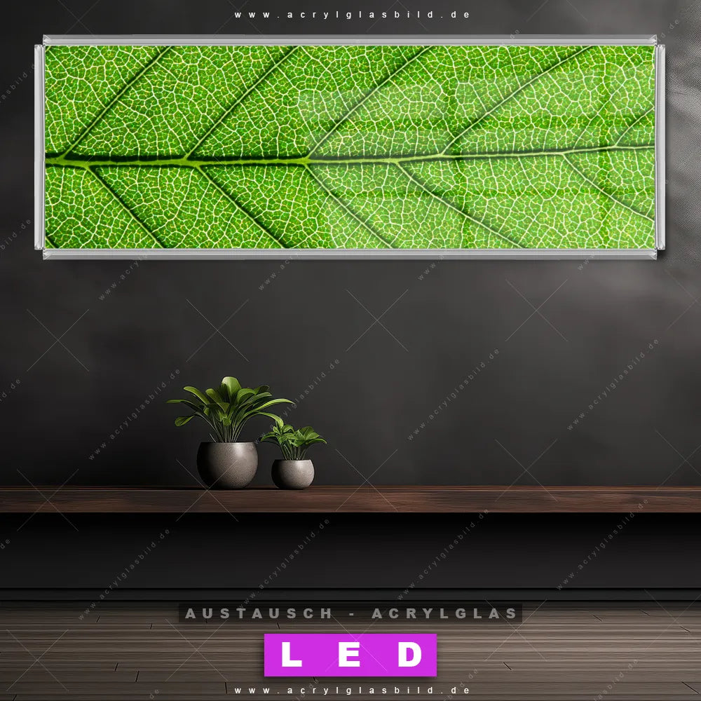 Wechsel-Acrylglas Canvalight® DIA | Grüne Blattadern | Panorama