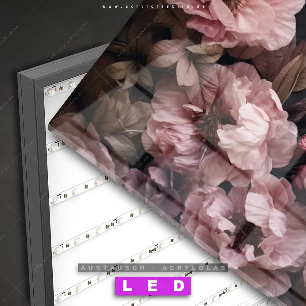 Wechsel-Acrylglas Canvalight® DIA | Hellrosa Blumen | Hochformat