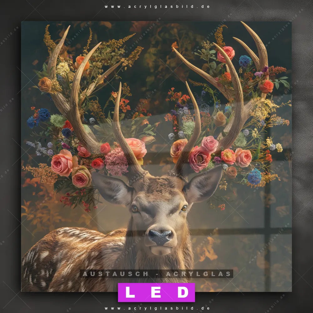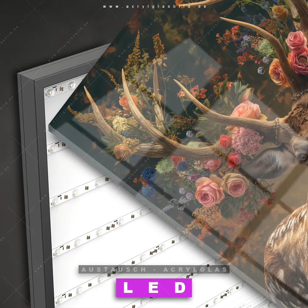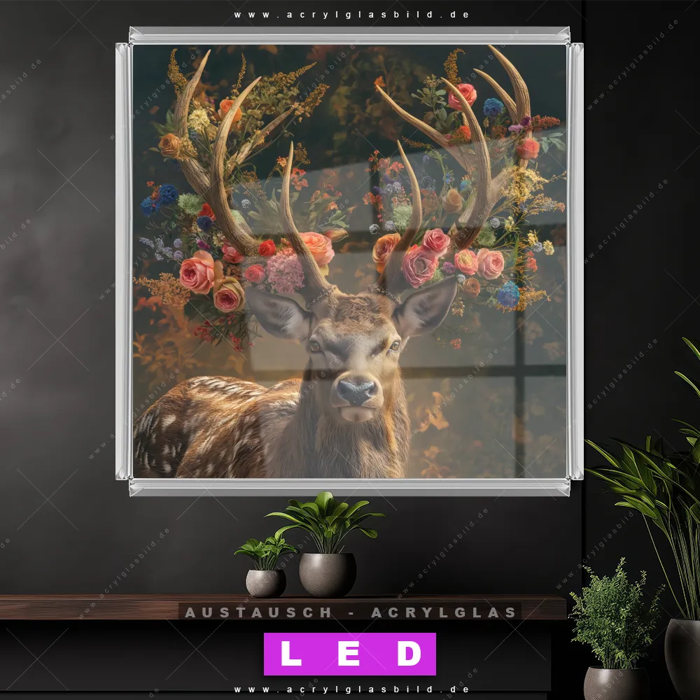Wechsel-Acrylglas Canvalight® DIA | Hirsch mit floralem Geweih | Quadrat