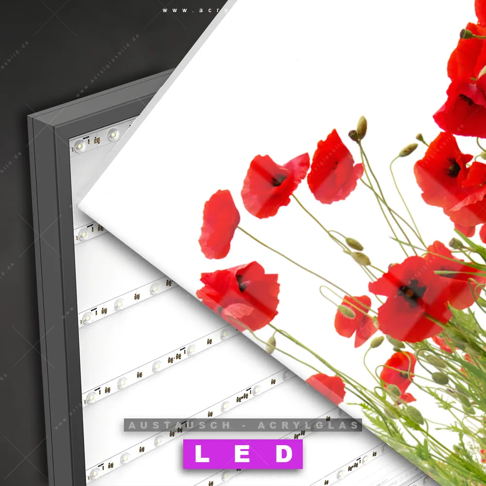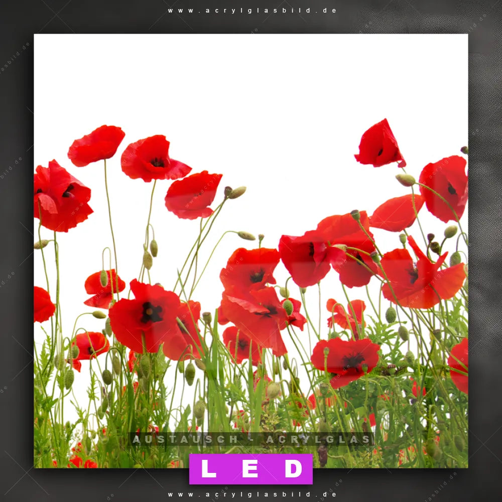 Begriffe wie Blume, Botanik, Pflanze, Natur, Mohn, Mohnblume, Wiese haben dich auf der Suche nach deinem neuen Austausch-Acrylglasbild inspiriert? Dann sollte das Wechsel-Acrylglasbild Mohnblumen für dein bereits vorhandenes LED Acrylglasbild Canvalight® DIA den Weg zu dir finden.