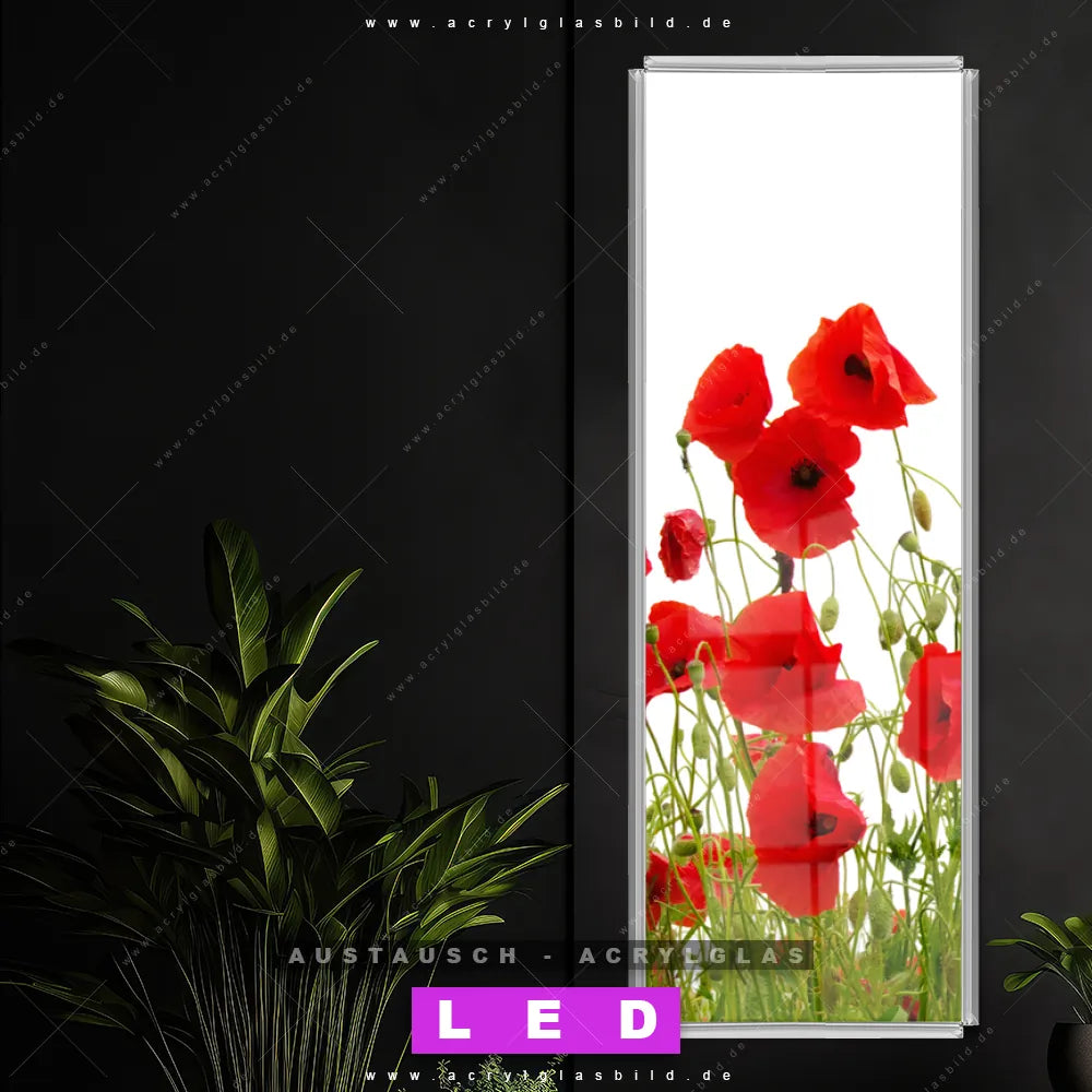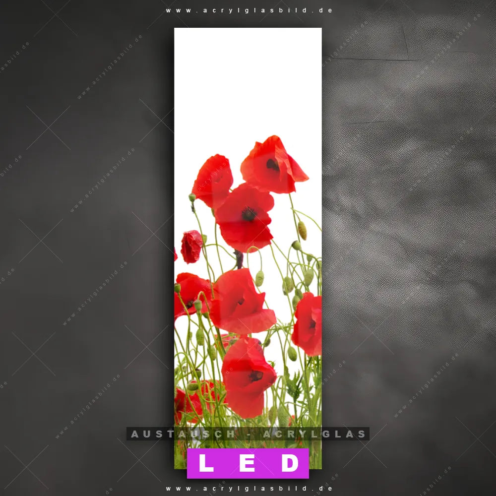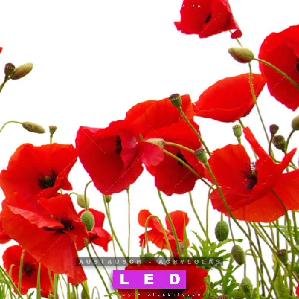 Begriffe wie Blume, Botanik, Pflanze, Natur, Mohn, Mohnblume, Wiese haben dich auf der Suche nach deinem neuen Austausch-Acrylglasbild inspiriert? Dann sollte das Wechsel-Acrylglasbild Mohnblumen für dein bereits vorhandenes LED Acrylglasbild Canvalight® DIA den Weg zu dir finden.