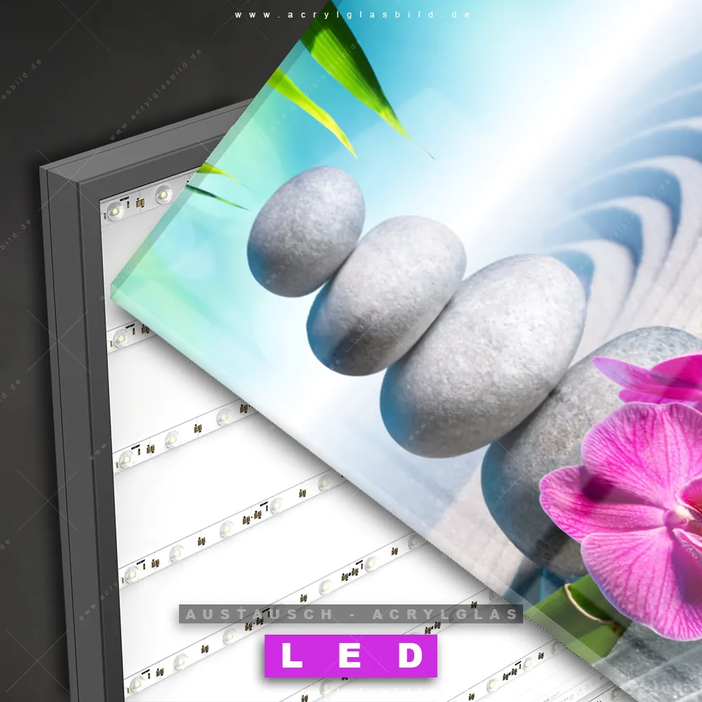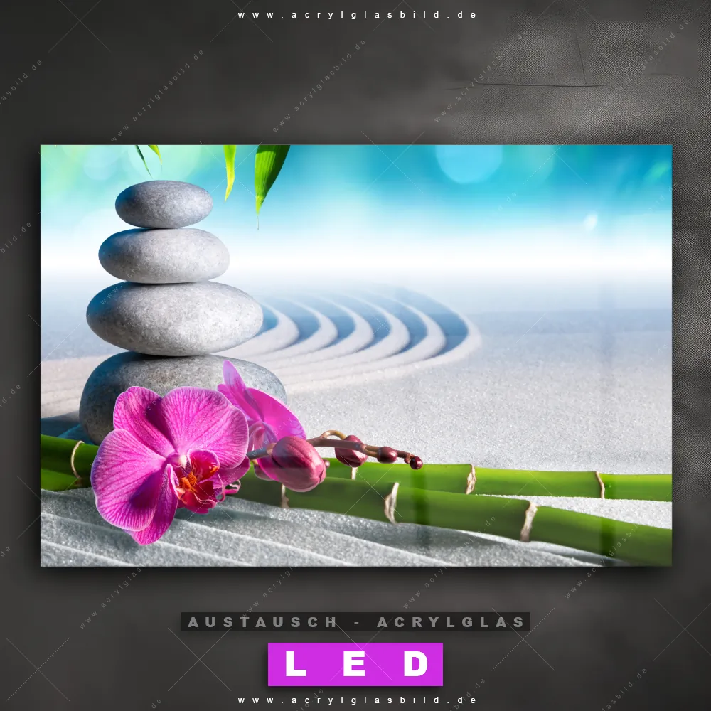 Wechsel-Acrylglas Canvalight® DIA | Orchidee & Zensteine | Querformat