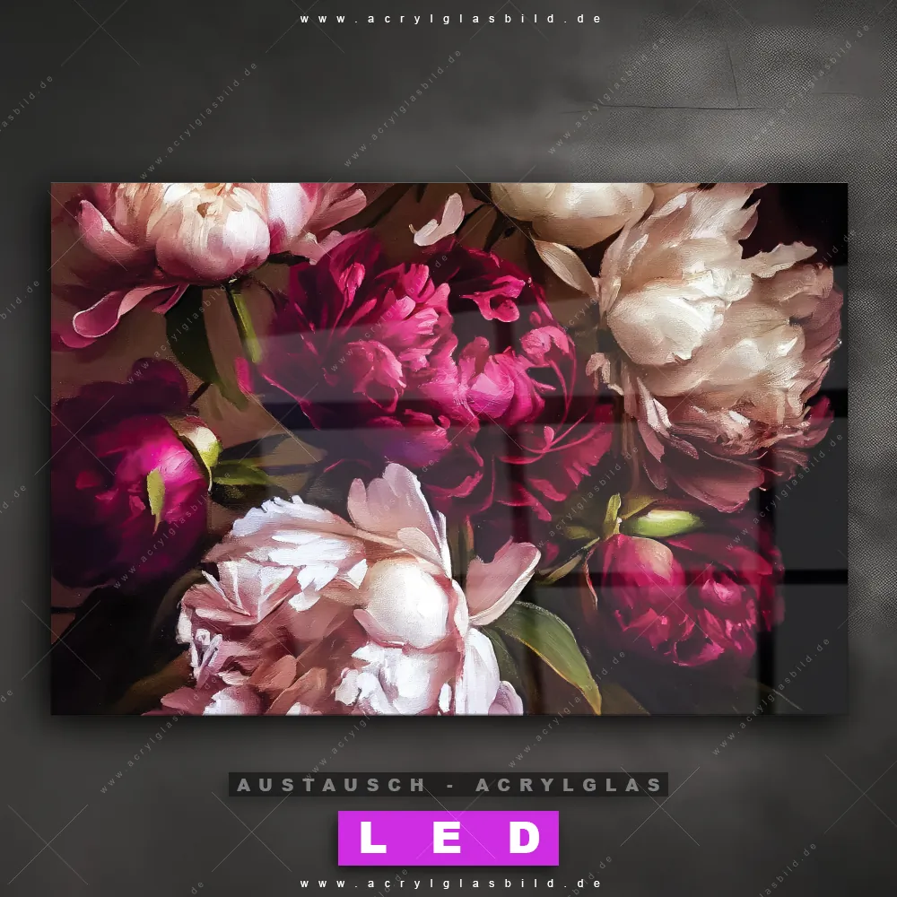 Wechsel-Acrylglas Canvalight® DIA | Pfingstrosen im Barockstil | Querformat