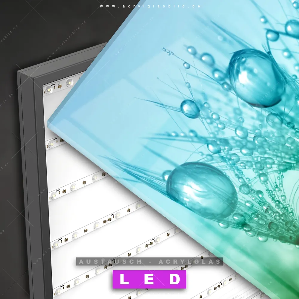 Begriffe wie Blume, Botanik, Pflanze, Natur, Nahaufnahme, Pusteblume, Dandelion, Tautropfen haben dich auf der Suche nach deinem neuen Austausch-Acrylglasbild inspiriert? Dann sollte das Wechsel-Acrylglasbild Nahaufnahme Pusteblume für dein bereits vorhandenes LED Acrylglasbild Canvalight® DIA den Weg zu dir finden.