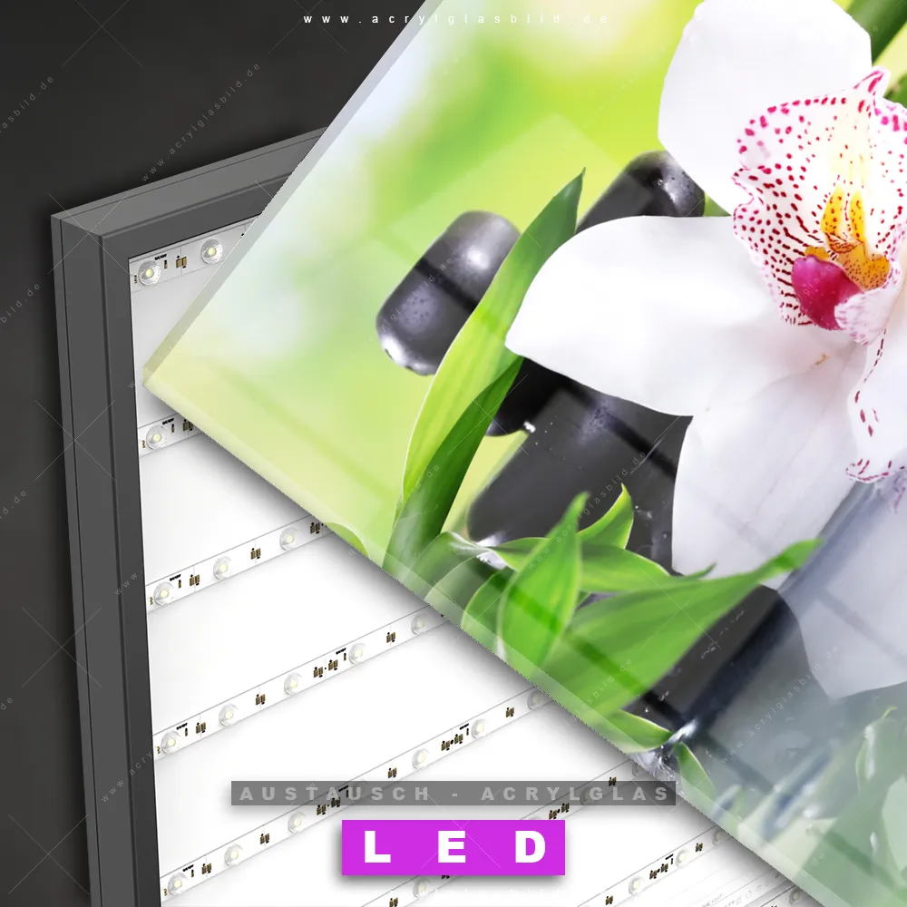 Begriffe wie Blume, Stein, Bambus, Meditation, Gelassenheit, Wellness, Harmonie, Spa, Yoga haben dich auf der Suche nach deinem neuen Austausch-Acrylglasbild inspiriert? Dann sollte das Wechsel-Acrylglasbild Bambus und Steine für dein bereits vorhandenes LED Acrylglasbild Canvalight® DIA den Weg zu dir finden.