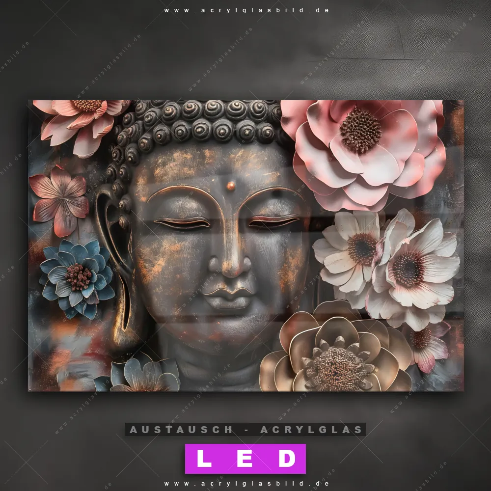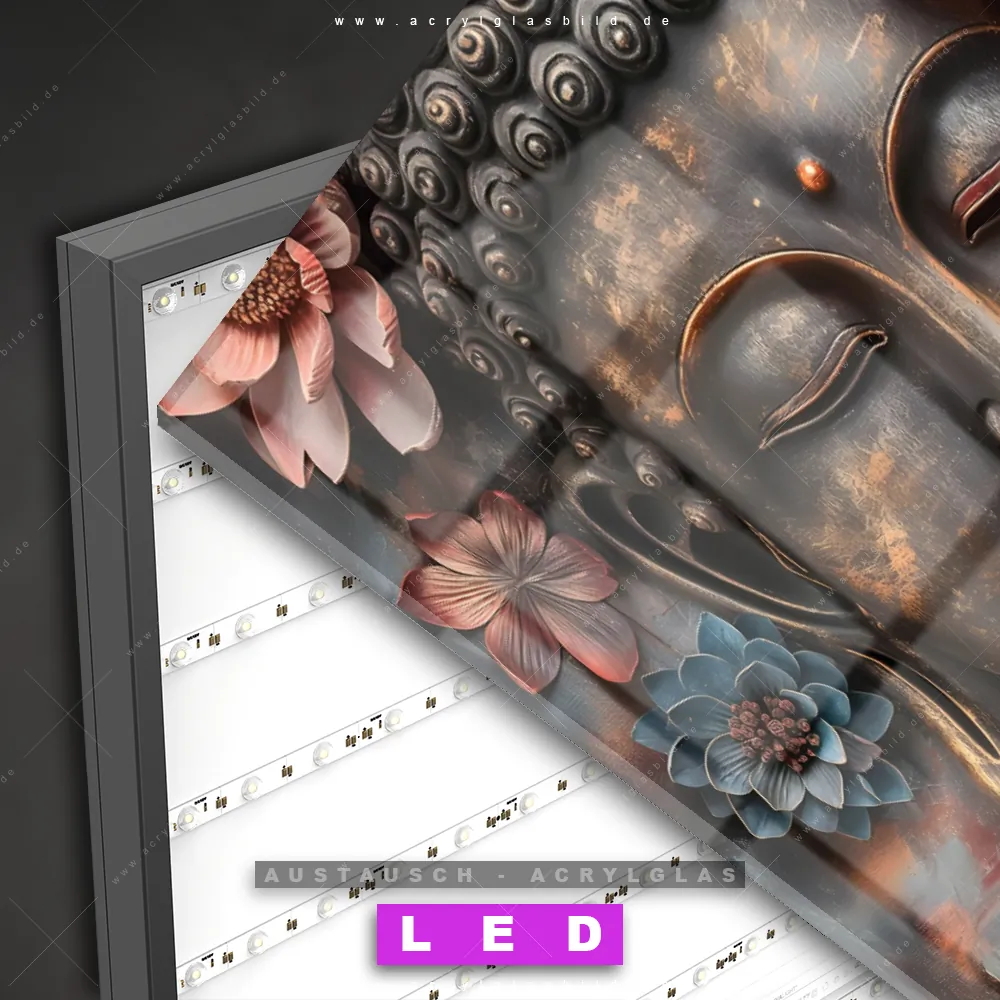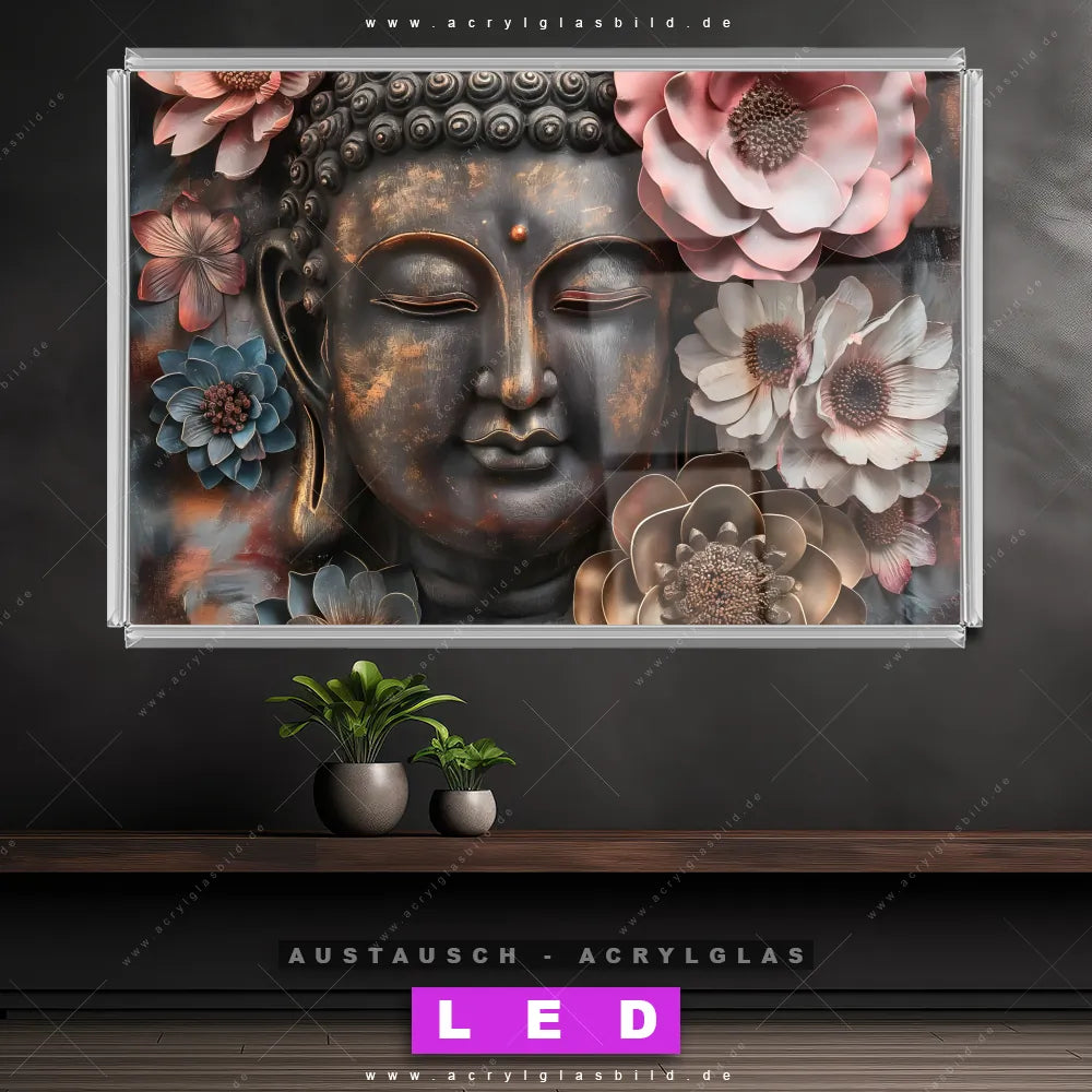 Wechsel-Acrylglas Canvalight® DIA | Spiritueller Buddha und Blumen | Querformat