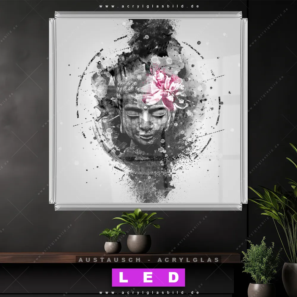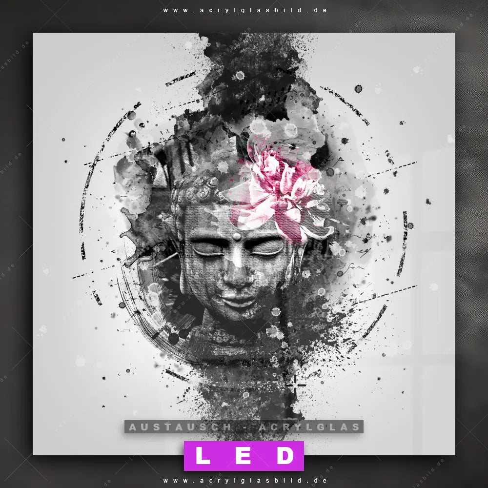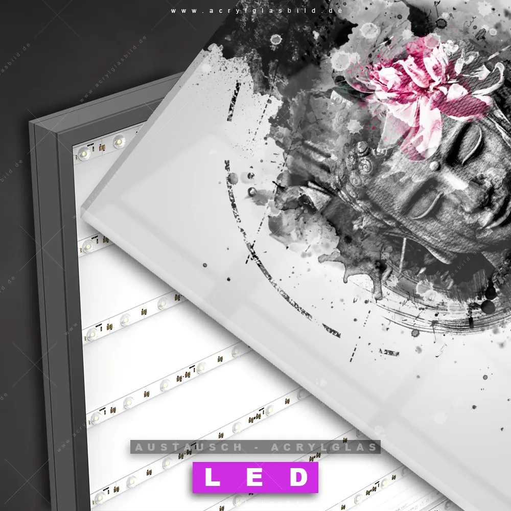 Begriffe wie Grunge, Streetart, modern, Porträt, Gesicht, Buddha, Meditation, Blüte, Blume haben dich auf der Suche nach deinem neuen Austausch-Acrylglasbild inspiriert? Dann sollte das Wechsel-Acrylglasbild Buddha in Blüte für dein bereits vorhandenes LED Acrylglasbild Canvalight® DIA den Weg zu dir finden.