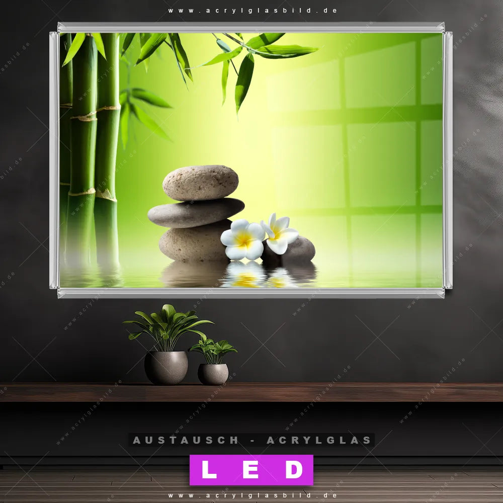 Wechsel-Acrylglas Canvalight® DIA | Bambus & Steine | Querformat