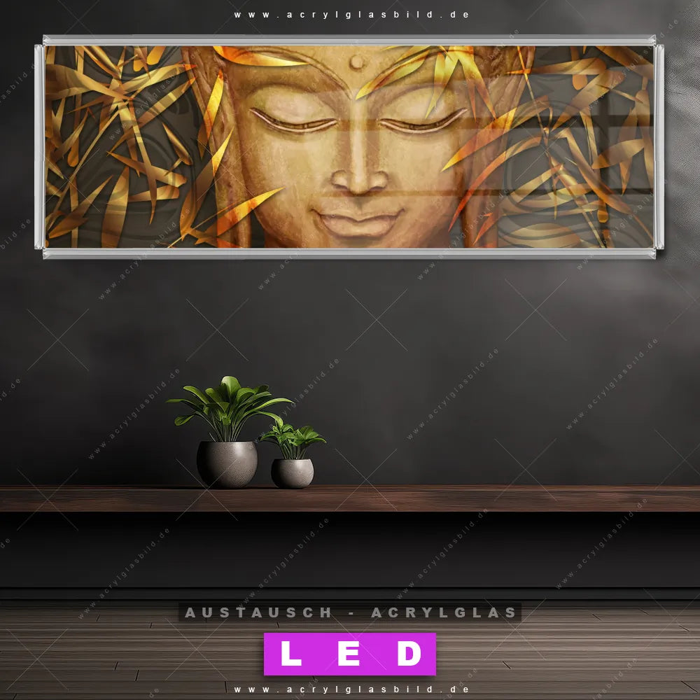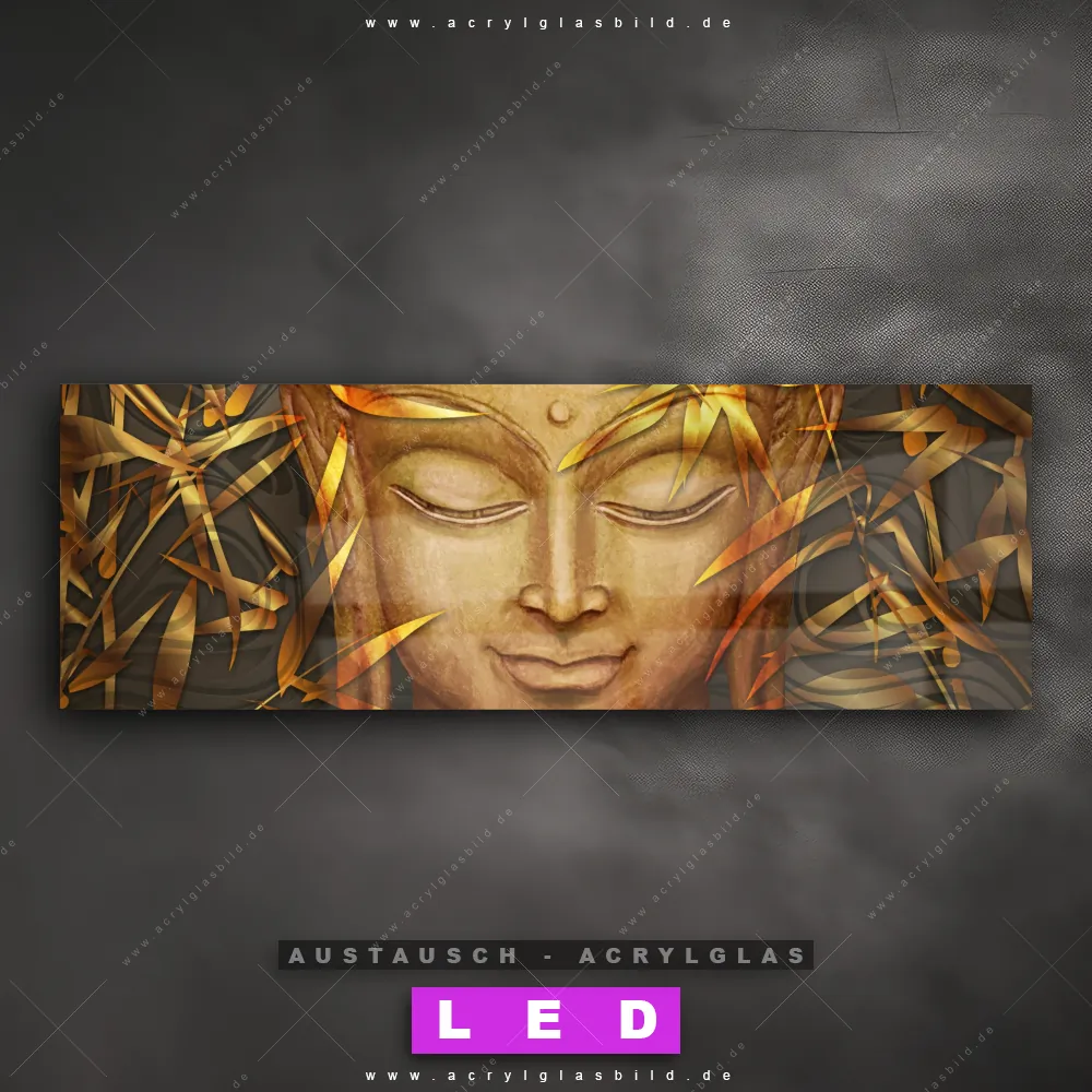Wechsel-Acrylglas Canvalight® DIA | Buddha & Bambus in Gold | Panorama