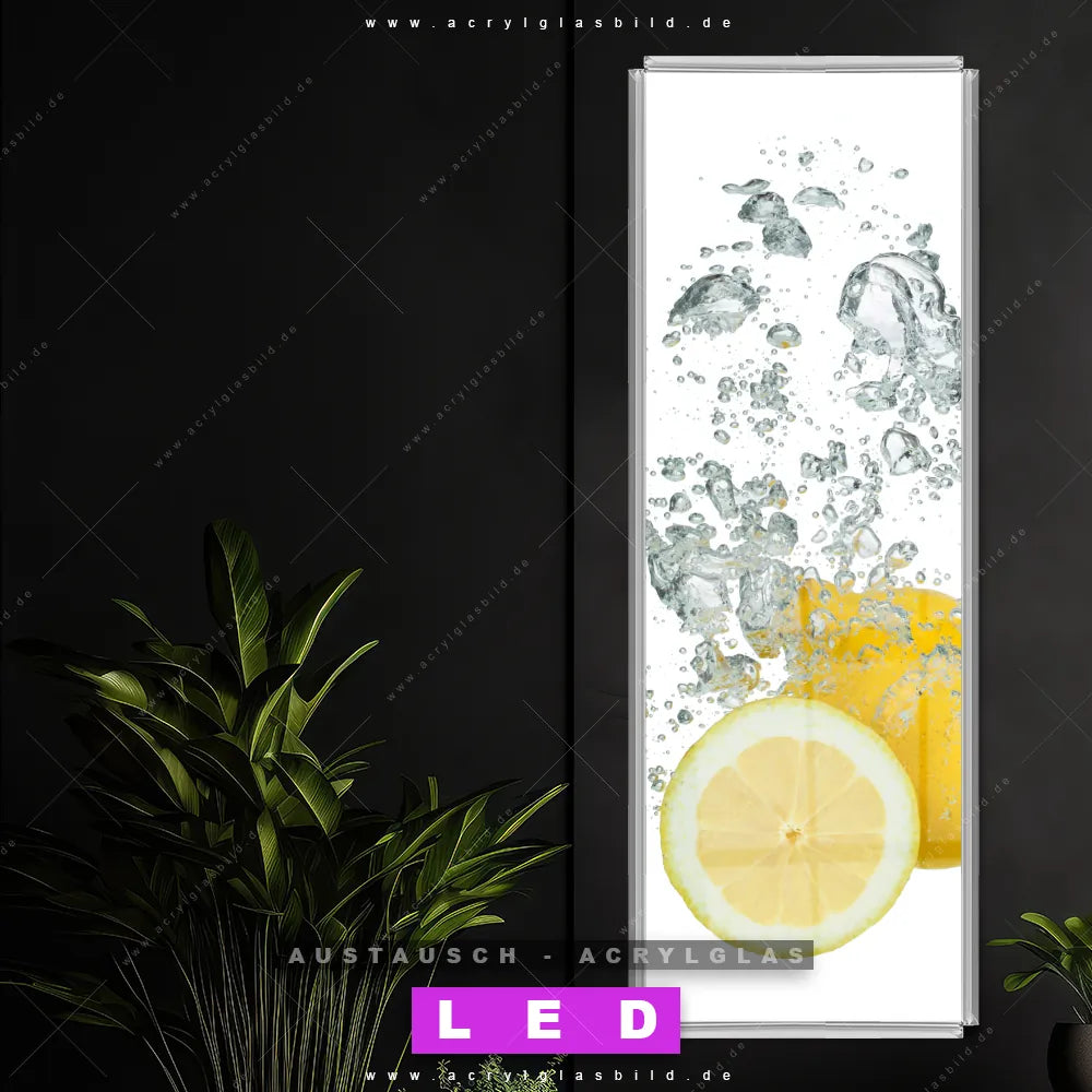 Begriffe wie Obst, zitrusfrüchte, Früchte, Wasser, Zitrone, Spritzer, spritzen, frisch, spritzig haben dich auf der Suche nach deinem neuen Austausch-Acrylglasbild inspiriert? Dann sollte das Wechsel-Acrylglasbild Zitrone mit Wasser für dein bereits vorhandenes LED Acrylglasbild Canvalight® DIA den Weg zu dir finden.