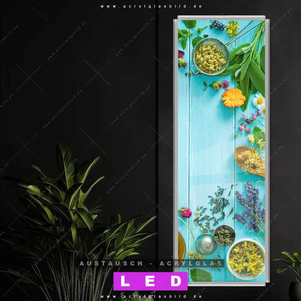 Wechsel-Acrylglas Canvalight® DIA | Kräuter auf blauem Holztisch | Schmal