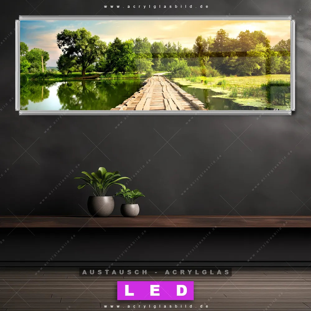 Begriffe wie Sonnenuntergang, Wasser, Fluss, See, Steg, Angeln, Teich, fischen haben dich auf der Suche nach deinem neuen Austausch-Acrylglasbild inspiriert? Dann sollte das Wechsel-Acrylglasbild Holzsteg am Wasser für dein bereits vorhandenes LED Acrylglasbild Canvalight® DIA den Weg zu dir finden.