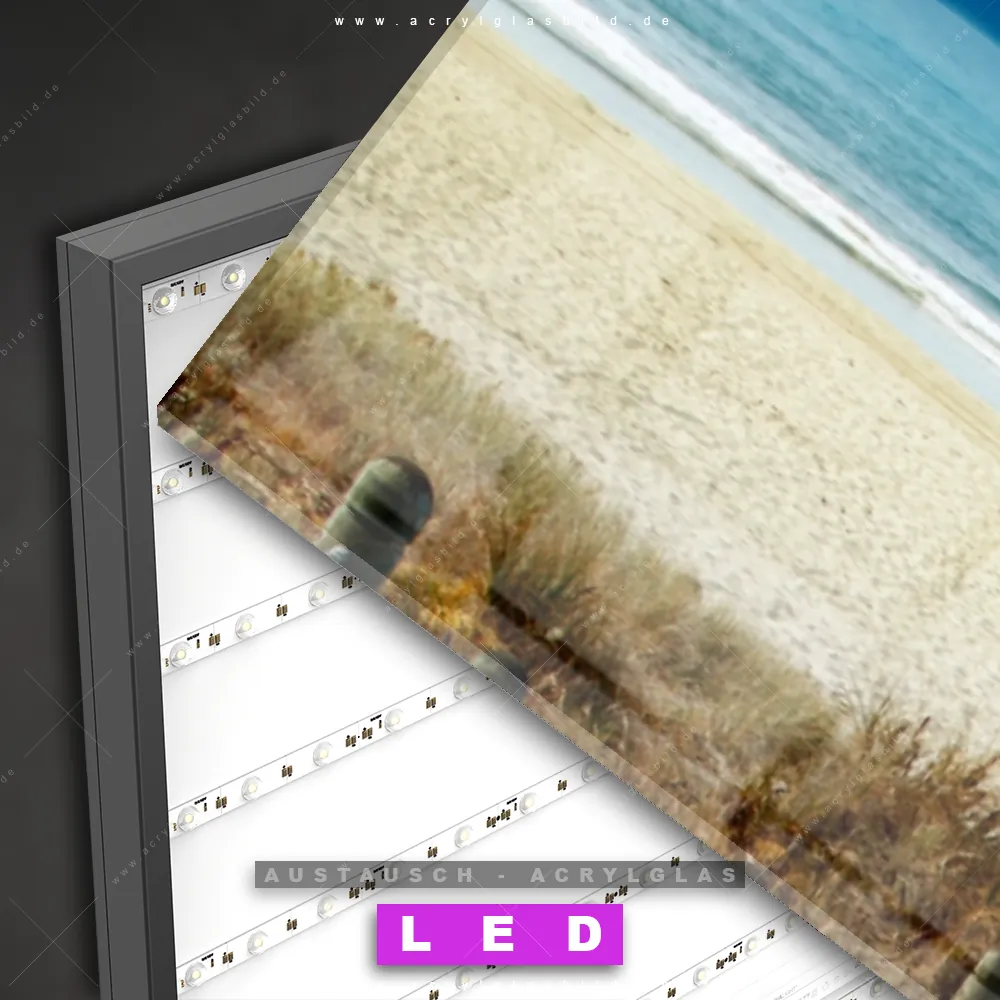 Begriffe wie Meer, Sonnenuntergang, Strand, Treppe, Weg, Herbst haben dich auf der Suche nach deinem neuen Austausch-Acrylglasbild inspiriert? Dann sollte das Wechsel-Acrylglasbild Steg zum Sandstrand für dein bereits vorhandenes LED Acrylglasbild Canvalight® DIA den Weg zu dir finden.