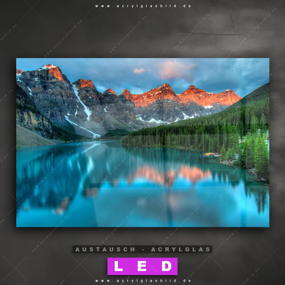 Wechsel-Acrylglas Canvalight® DIA | Moränensee Sonnenaufgang | Querformat