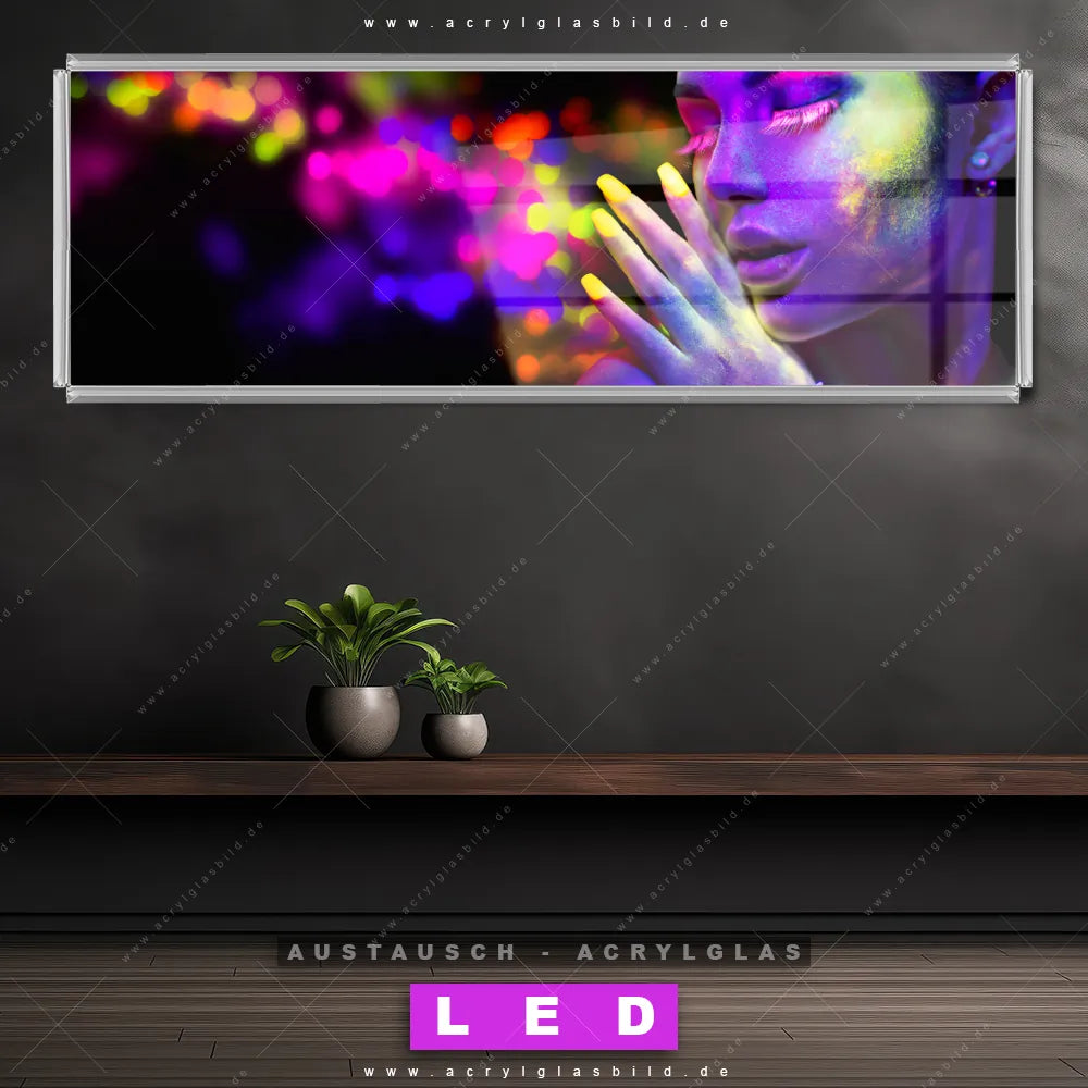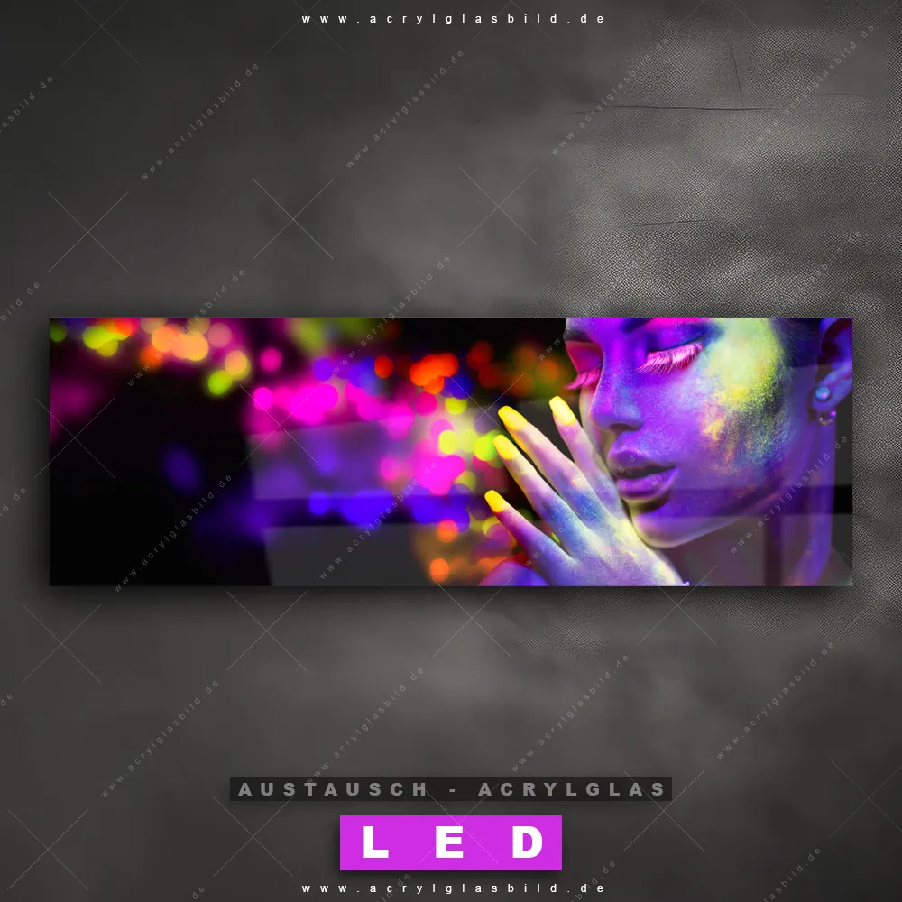 Wechsel-Acrylglas Canvalight® DIA | Frau im Neonlicht | Panorama