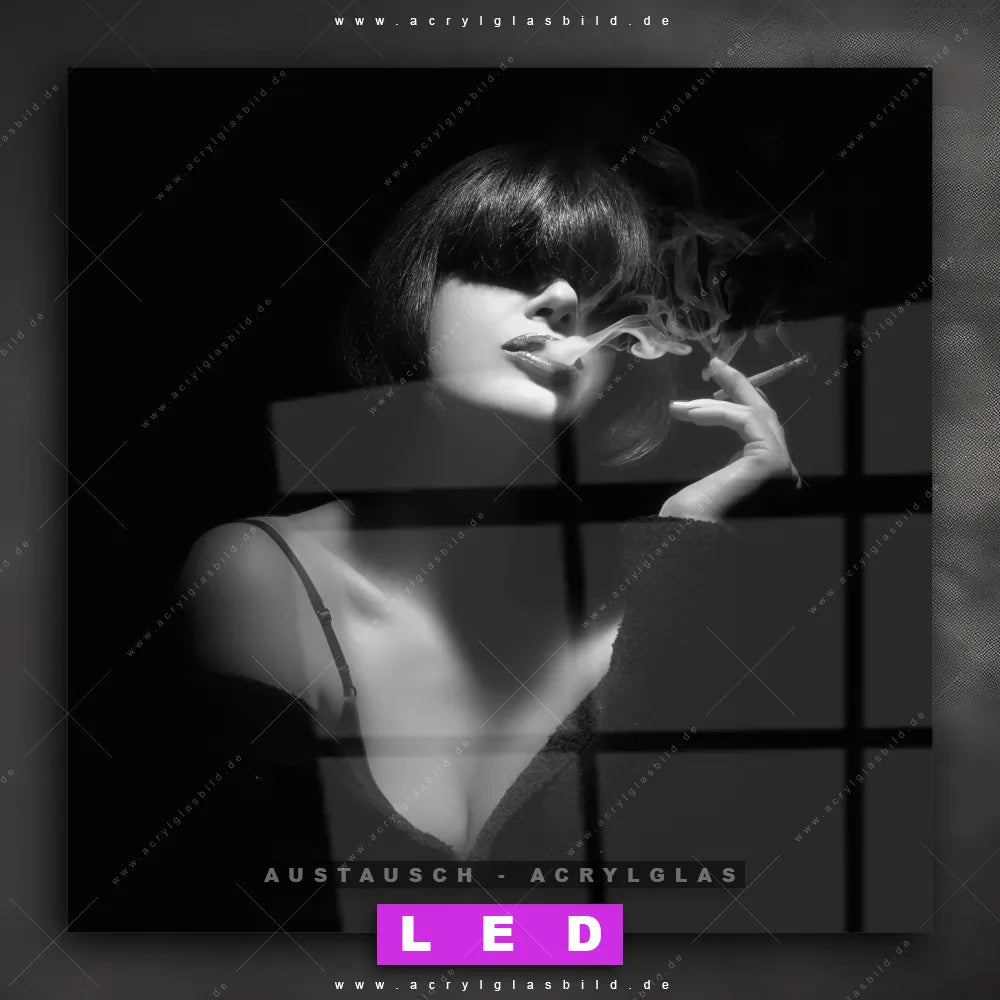 Begriffe wie Frau, Erotik, modern, sexy, Zigarette, rauchen, Akt, Körper haben dich auf der Suche nach deinem neuen Austausch-Acrylglasbild inspiriert? Dann sollte das Wechsel-Acrylglasbild rauchende Frau für dein bereits vorhandenes LED Acrylglasbild Canvalight® DIA den Weg zu dir finden.