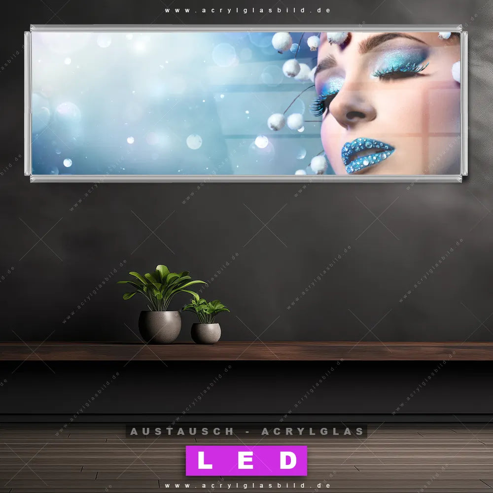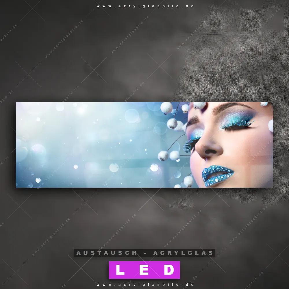Begriffe wie Frau, Lippen, Mund, Porträt, Erotik, modern, Farbe, Beauty, Sterne, Nacht, Himmel haben dich auf der Suche nach deinem neuen Austausch-Acrylglasbild inspiriert? Dann sollte das Wechsel-Acrylglasbild Gesichtsporträt Frau Blautöne für dein bereits vorhandenes LED Acrylglasbild Canvalight® DIA den Weg zu dir finden.