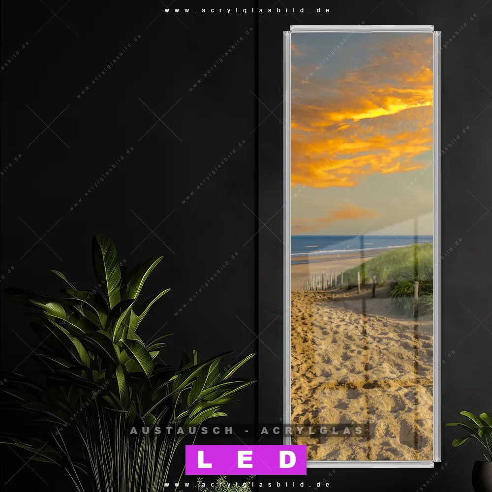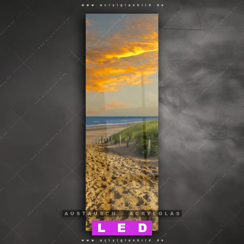 Begriffe wie Deutschland, Sommer, Ostsee - Nordsee, Sonnenuntergang - Sonnenaufgang, Urlaub - Reisen, Sand haben dich auf der Suche nach deinem neuen Austausch-Acrylglasbild inspiriert? Dann sollte das Wechsel-Acrylglasbild Sonnenuntergang Nordeseeküste für dein bereits vorhandenes LED Acrylglasbild Canvalight® DIA den Weg zu dir finden.