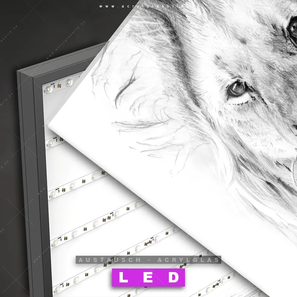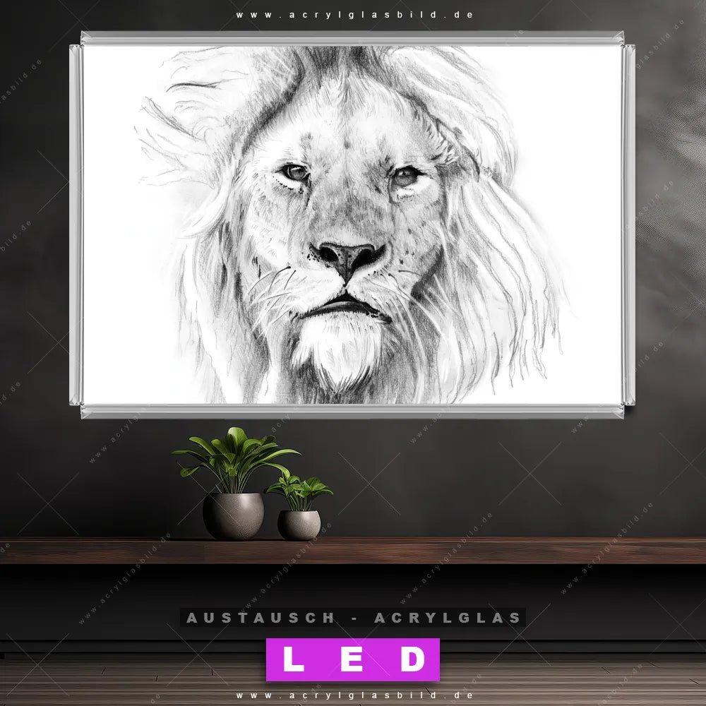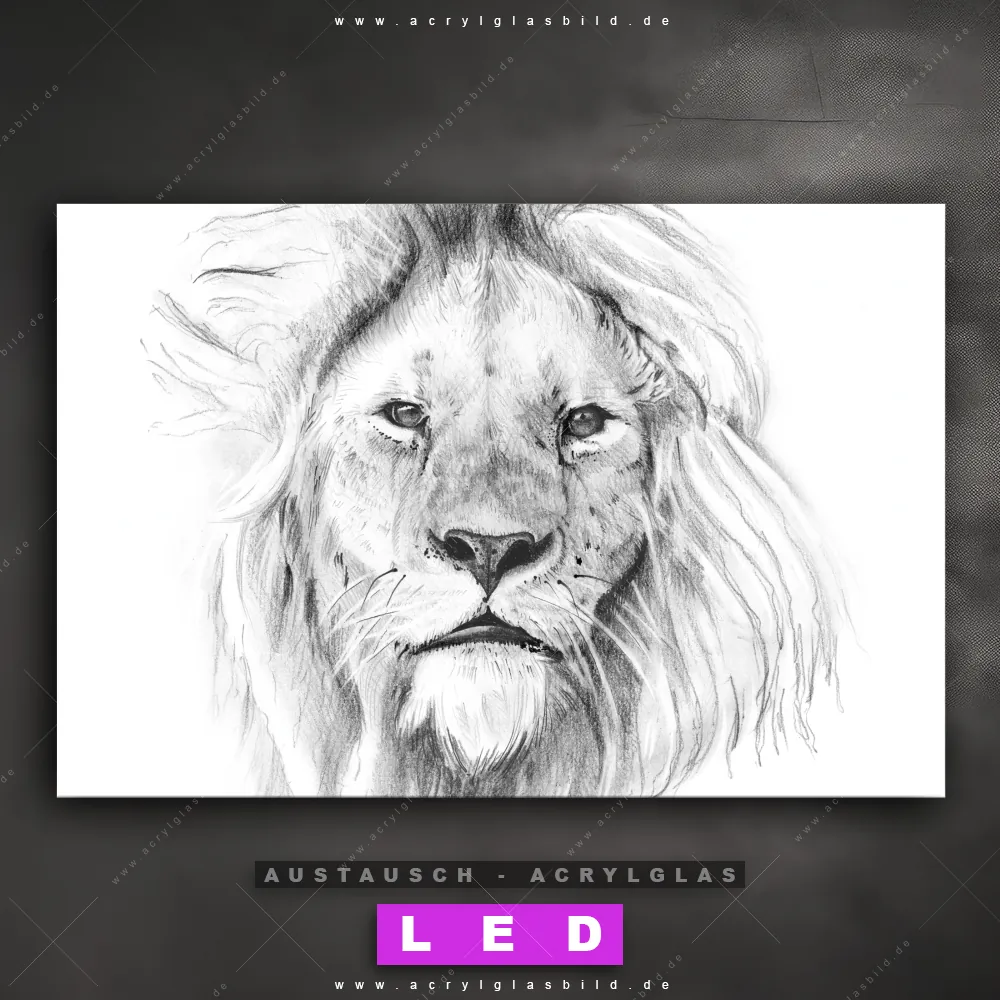 Wechsel-Acrylglas Canvalight® DIA | Bleistiftzeichnung Löwe | Querformat