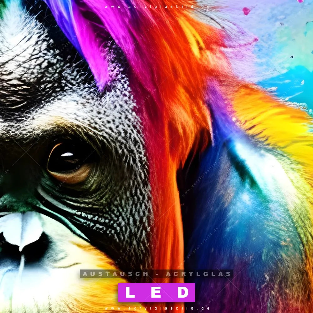 Begriffe wie Tier, Affe, Monkey, Farbe, Farbspritzer, Orang-Utan, Menschenaffe haben dich auf der Suche nach deinem neuen Austausch-Acrylglasbild inspiriert? Dann sollte das Wechsel-Acrylglasbild Graffiti Orang-Utan für dein bereits vorhandenes LED Acrylglasbild Canvalight® DIA den Weg zu dir finden.