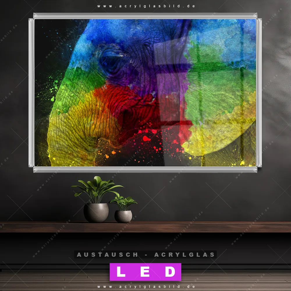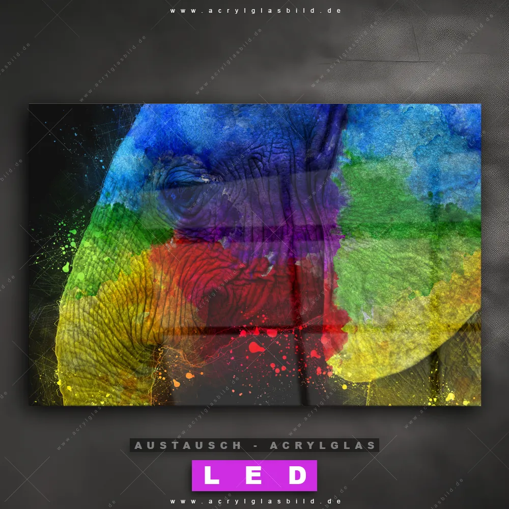 Begriffe wie Pop Art, Kunst, bunt, Tier, Elefant, Afrika, wild, Safari haben dich auf der Suche nach deinem neuen Austausch-Acrylglasbild inspiriert? Dann sollte das Wechsel-Acrylglasbild Aquarell-Elefant in lebendigen Farben für dein bereits vorhandenes LED Acrylglasbild Canvalight® DIA den Weg zu dir finden.