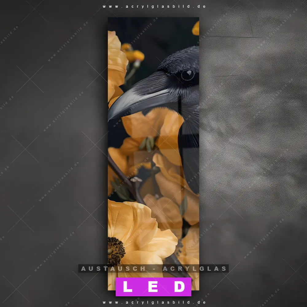 Wechsel-Acrylglas Canvalight® DIA | Naturbild - Rabe & Blüten | Schmal