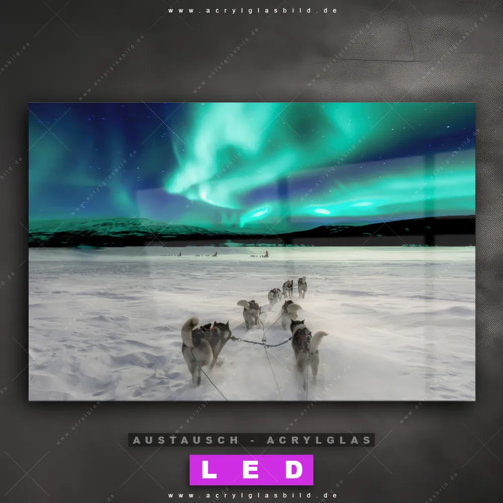 Wechsel-Acrylglas Canvalight® DIA | Nordlichter und Schlittenhunde | Querformat