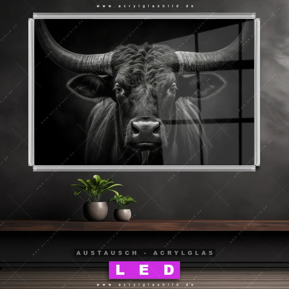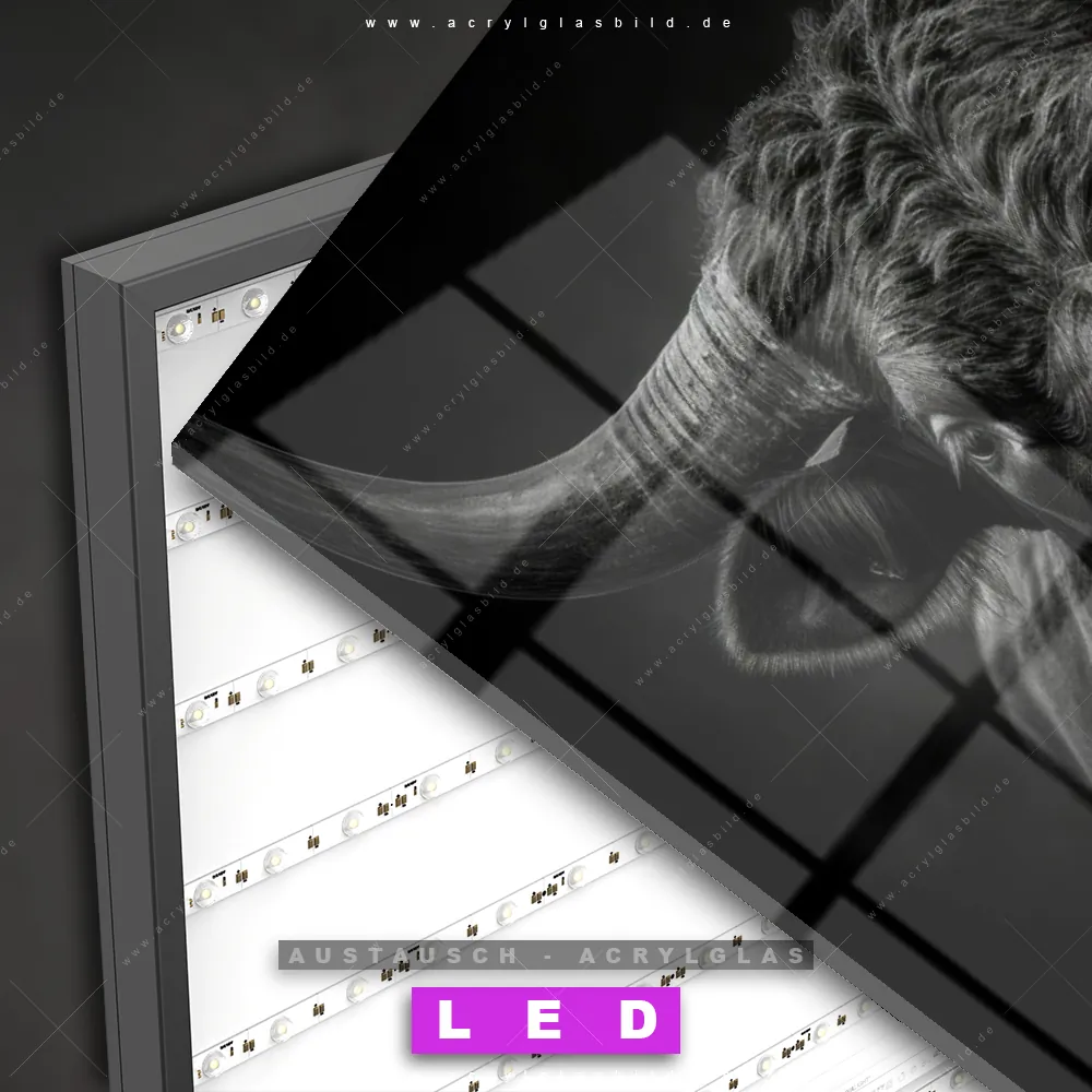 Begriffe wie Hochlandrind, Rind, Stier, Hörner, Porträt haben dich auf der Suche nach deinem neuen Austausch-Acrylglasbild inspiriert? Dann sollte das Wechsel-Acrylglasbild Stier mit Hörnern für dein bereits vorhandenes LED Acrylglasbild Canvalight® DIA den Weg zu dir finden.