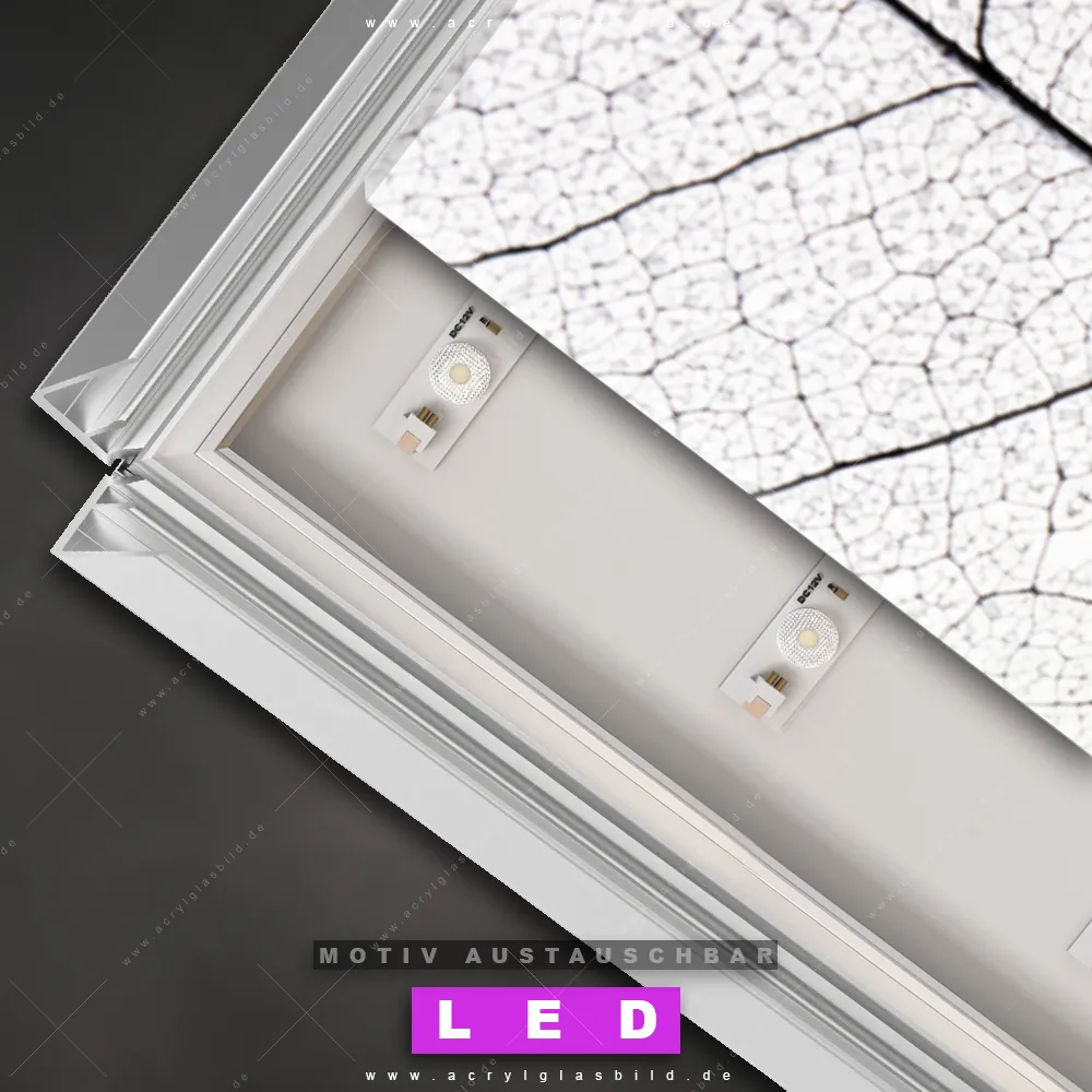Also, warum noch zögern? Mach deine Wände mit einem Leuchtbild zum absoluten Hingucker und bestelle jetzt das Canvalight® DIA LED Acrylglasbild Blatt mit Strukturen. Deine Wände werden leuchten, und deine Freunde werden dank der wechselbaren Motive beeindruckt sein!