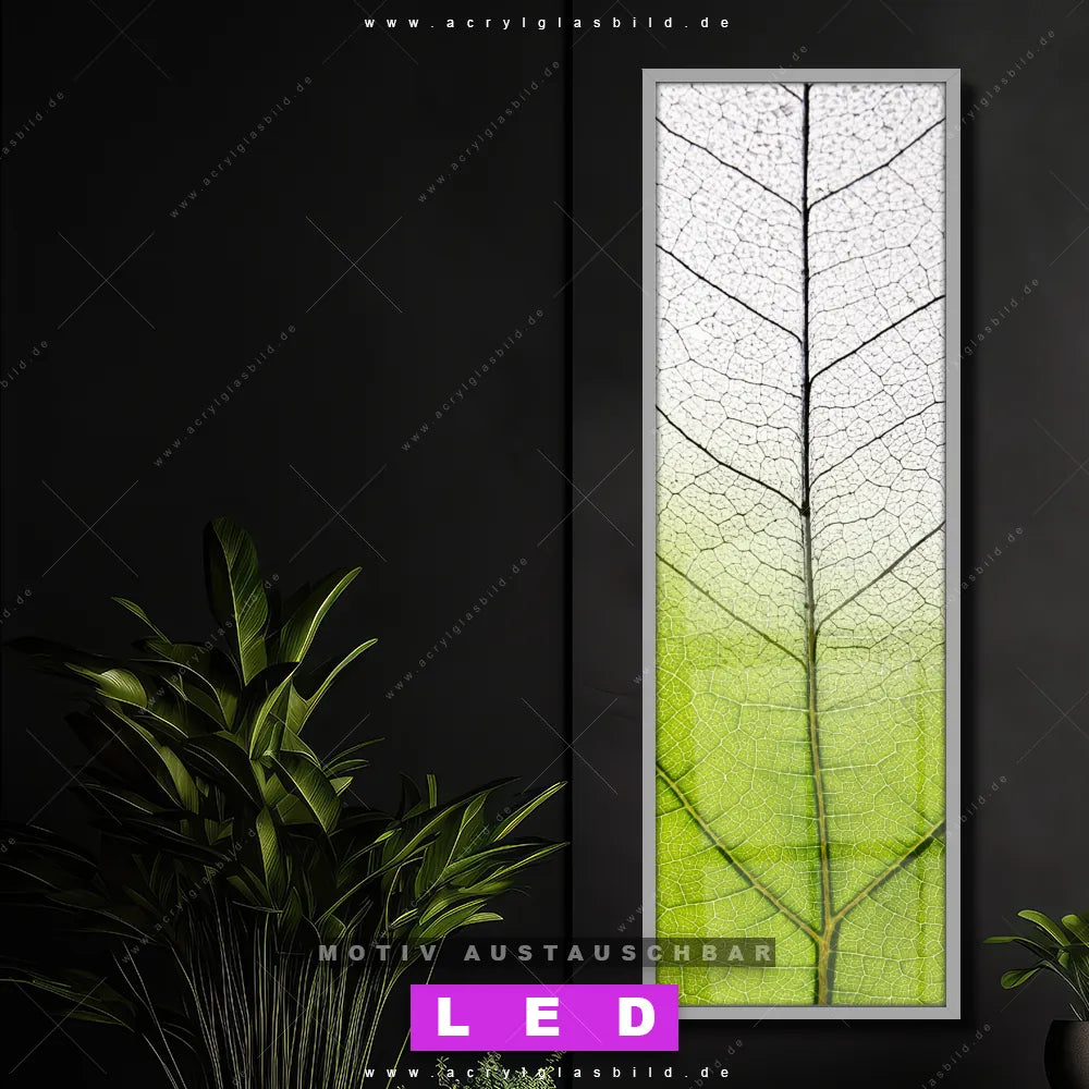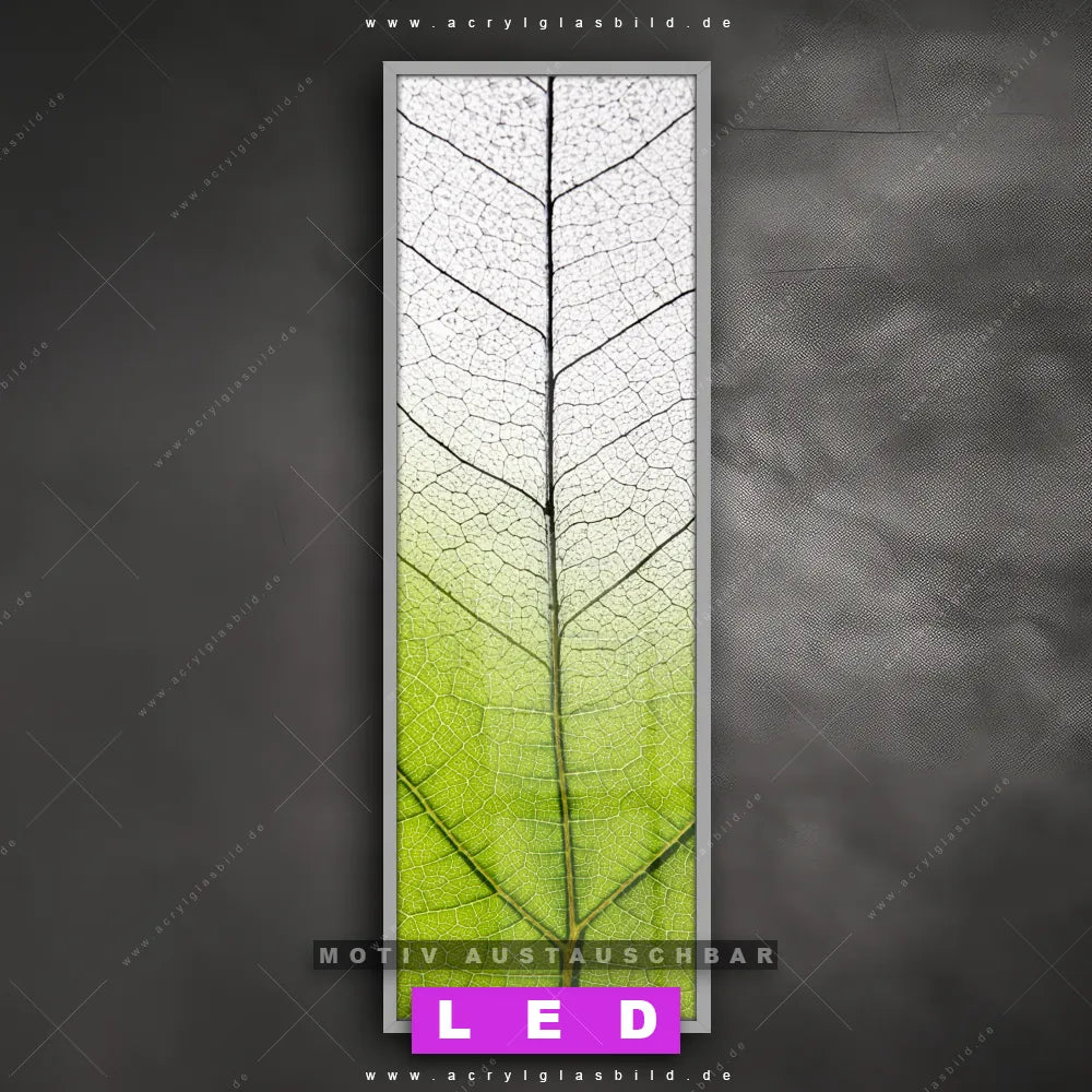 Bist du bereit, deine Wände mit einem dimmbaren LED Bild mit Fernbedienung und optionaler Farbtemperatursteuerung auf das nächste Level zu bringen? Unser Muster - Texturen, Blumen - Botanik Canvalight® DIA LED Acrylglasbild ist genau das, was du brauchst! Das Wandbild mit LED Beleuchtung im Schmalen Format mit austauschbarer bedruckter Acrylglas-Scheibe Grünes Blatt bringt Licht und Stil in dein Zuhause – und das in null Komma nichts!