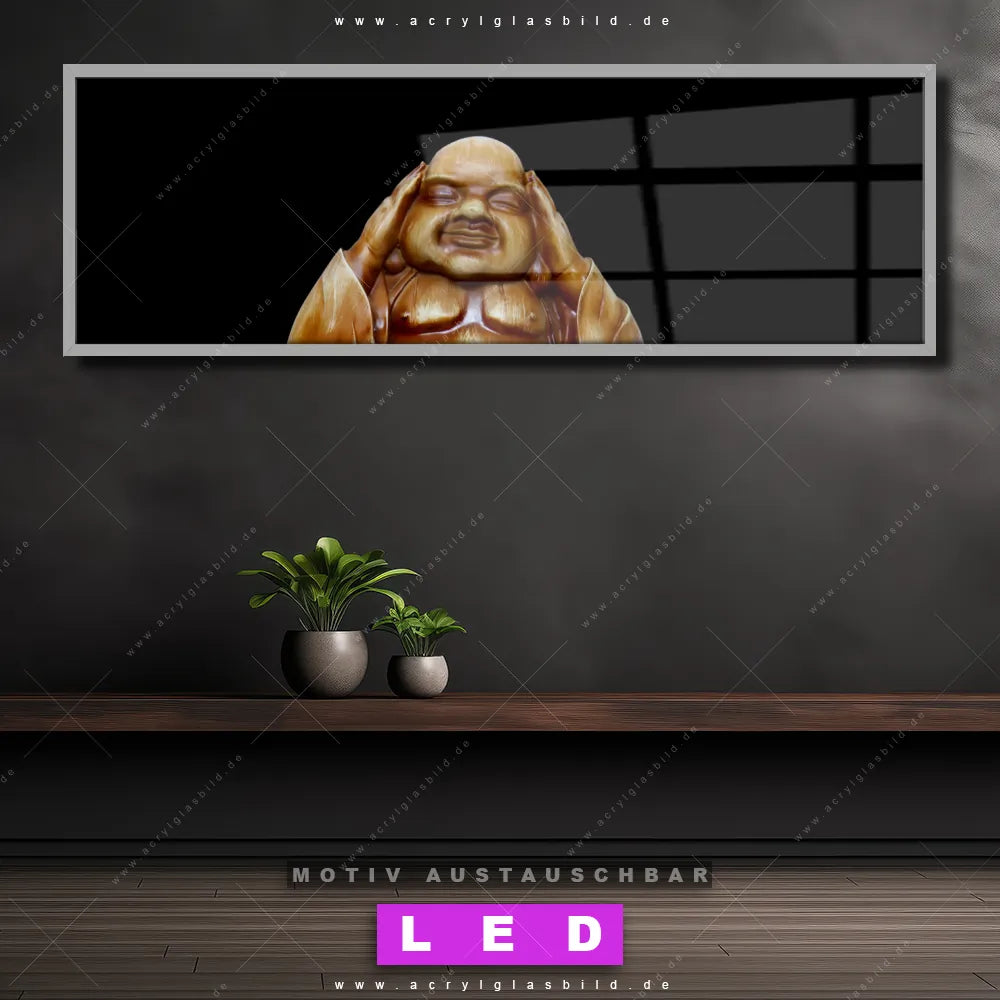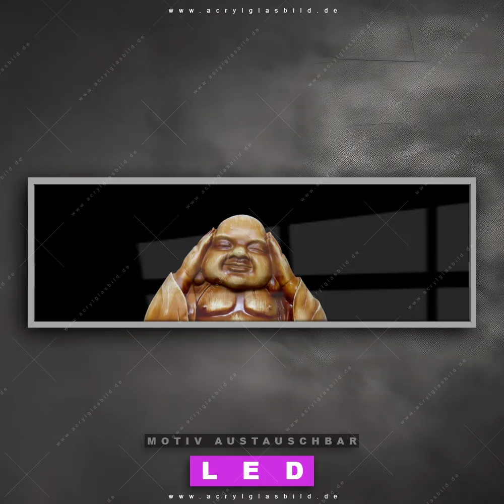 Deine Wände könnten dringend ein dimmbares LED Bild mit Fernbedienung und optionaler Farbtemperatursteuerung gebrauchen? Dann haben wir das perfekte Wandbild mit LED Beleuchtung für dich: unser mega-cooles Buddha - Feng Shui Canvalight® DIA LED Acrylglasbild! Mit unserem angesagten Leuchtbild aus Acrylglas im Panorama-Format und der austauschbaren bedruckten Acrylglas-Scheibe Buddha - no evil bringst du nicht nur Licht, sondern auch jede Menge Flair in deine Räume.