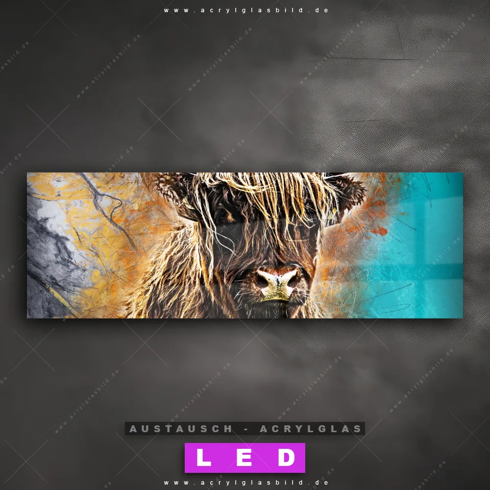 Begriffe wie Tier, Stier, Hochlandkuh, Highlander, Büffel, Hochlandrind, Rind, Kuh, Hörner, Bulle haben dich auf der Suche nach deinem neuen Austausch-Acrylglasbild inspiriert? Dann sollte das Wechsel-Acrylglasbild Hochlandrind-Portrait für dein bereits vorhandenes LED Acrylglasbild Canvalight® DIA den Weg zu dir finden.
