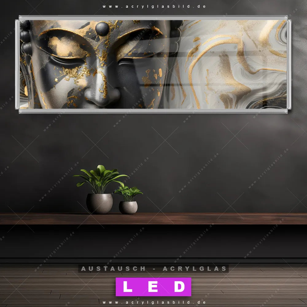 Wechsel-Acrylglas Canvalight® DIA | Goldener Buddha Fluid Art | Panorama