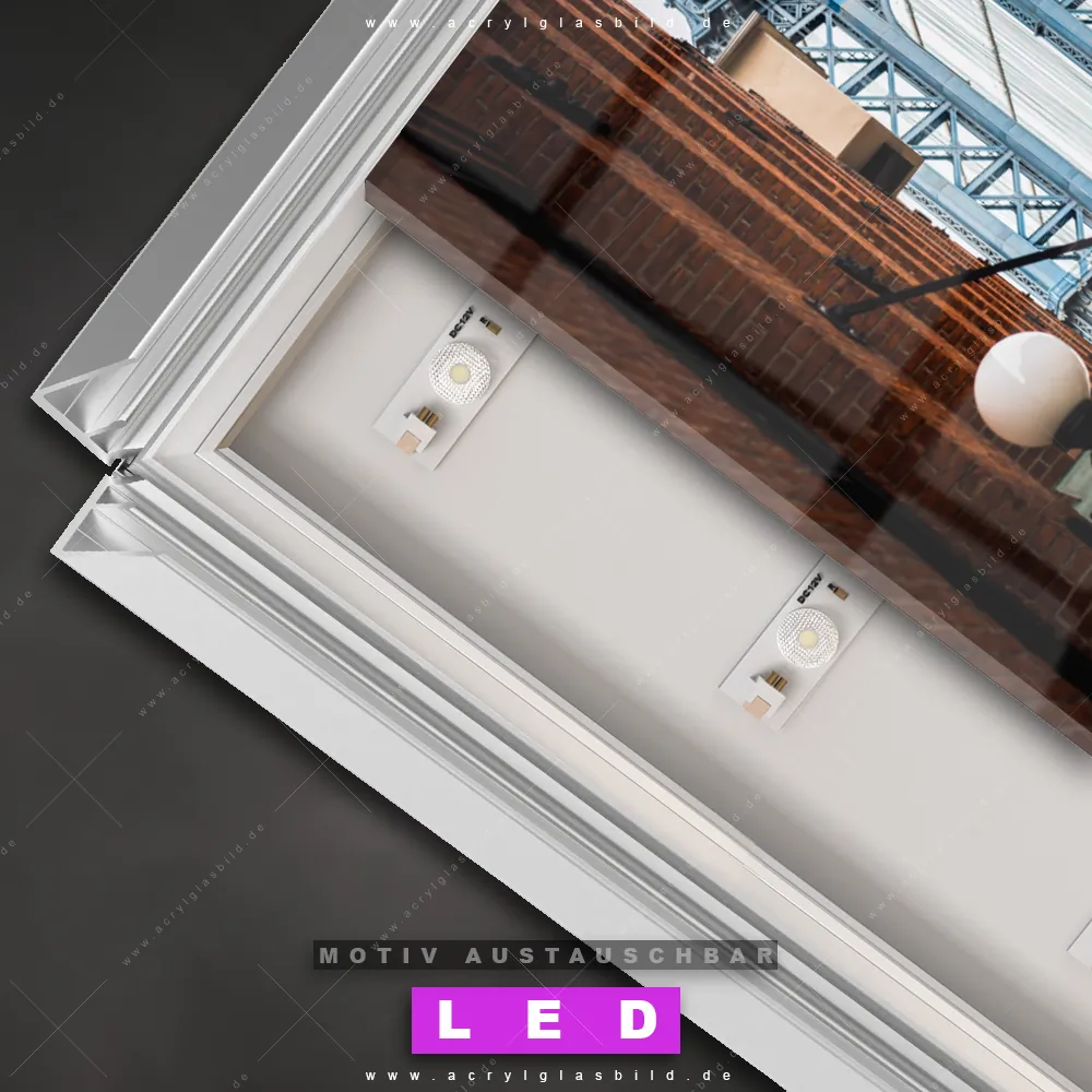 Du bist auf der Suche nach einem dimmbaren Architektur - Gebäude, Städte - Skylines LED Bild mit Fernbedienung und optionaler Farbtemperatursteuerung? Dann haben wir hier genau das richtige Wandbild mit LED Beleuchtung für dich: Unser Canvalight® DIA LED Acrylglasbild Manhattan im Querformat mit austauschbarer bedruckter Acrylglas-Scheibe. Dieses Leuchtbild bringt sofort Partybeleuchtung in deine Räume!