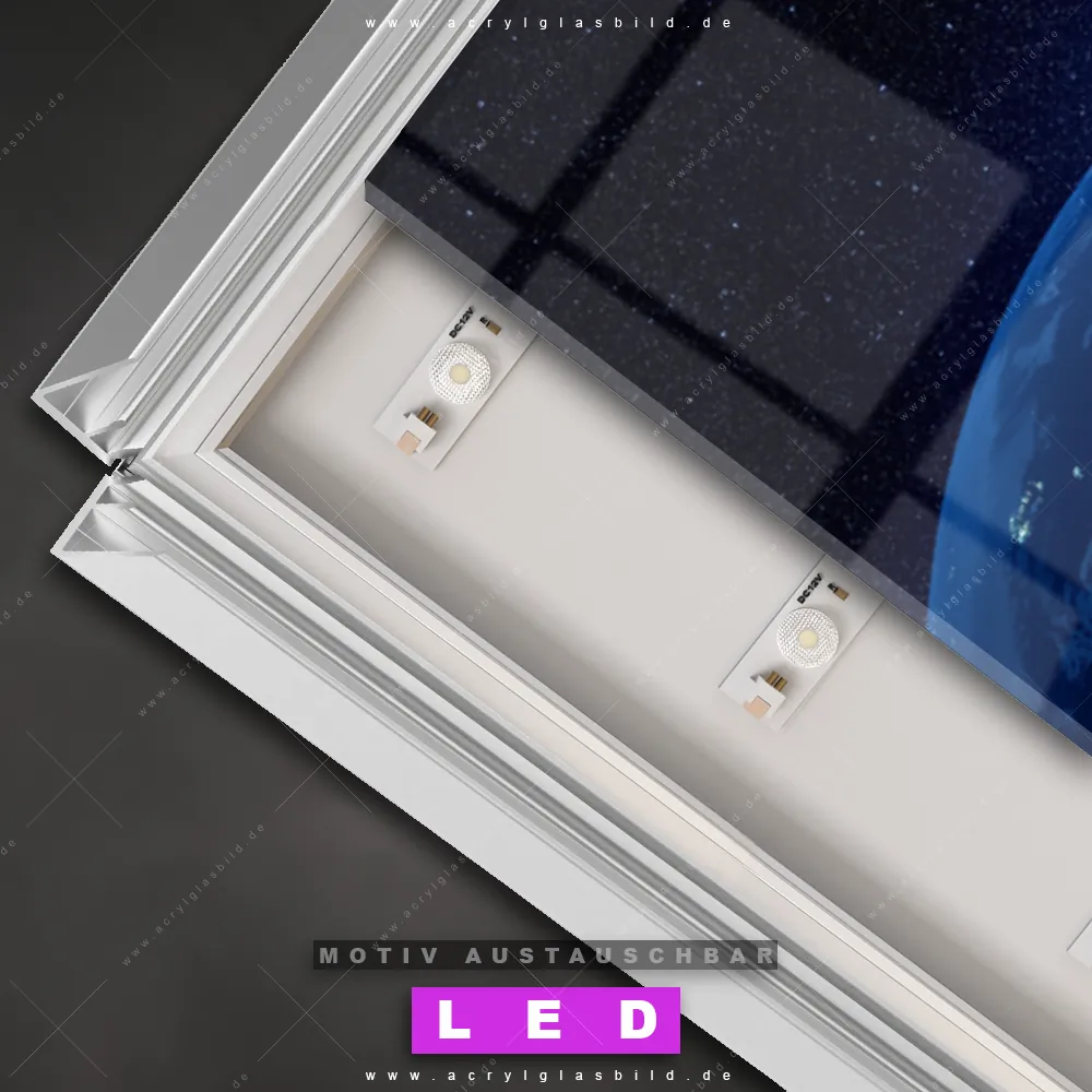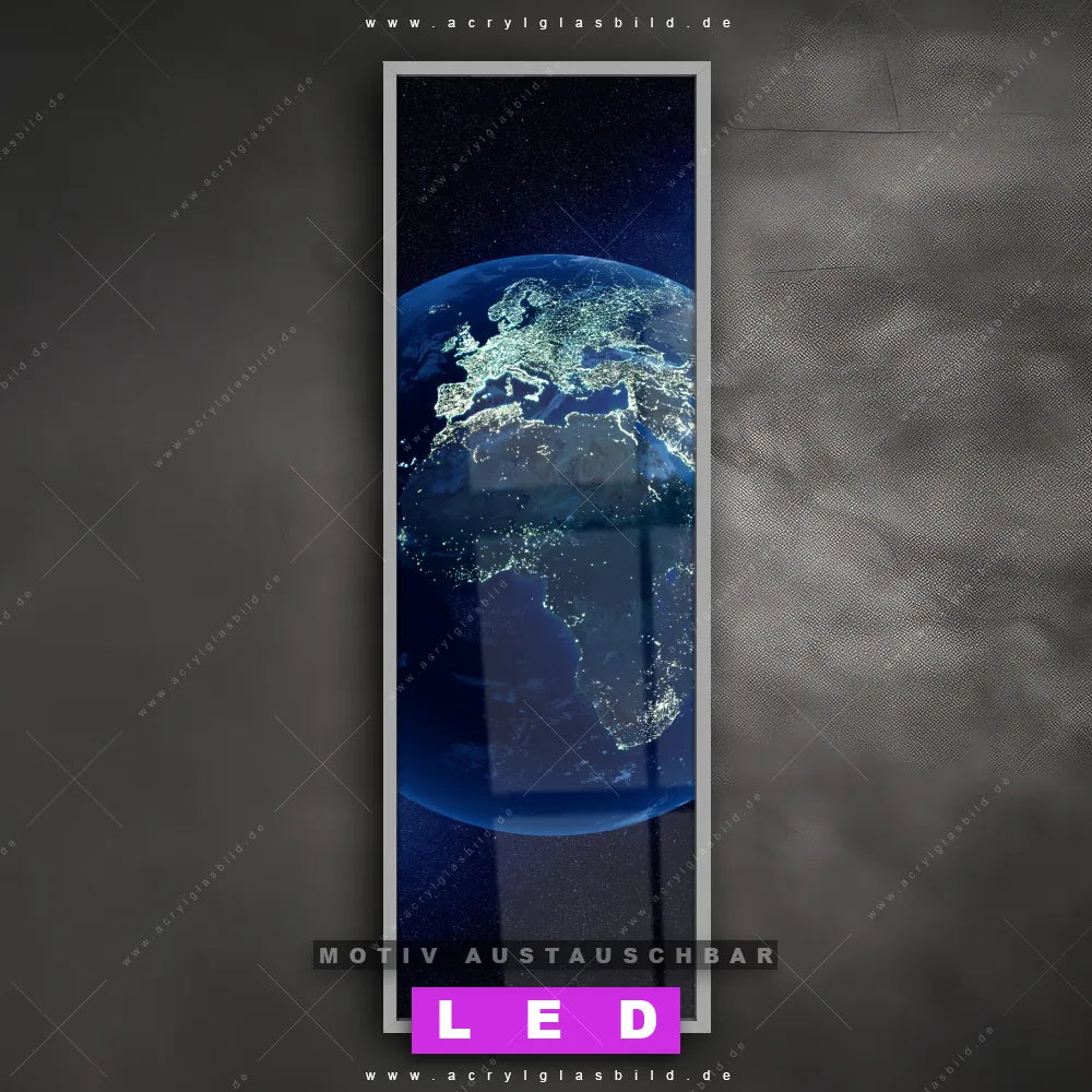 Bist du bereit, deine Wände mit einem dimmbaren LED Bild mit Fernbedienung und optionaler Farbtemperatursteuerung auf das nächste Level zu bringen? Unser Landschaften Canvalight® DIA LED Acrylglasbild ist genau das, was du brauchst! Das Wandbild mit LED Beleuchtung im Schmalen Format mit austauschbarer bedruckter Acrylglas-Scheibe Die Erde bringt Licht und Stil in dein Zuhause – und das in null Komma nichts!
