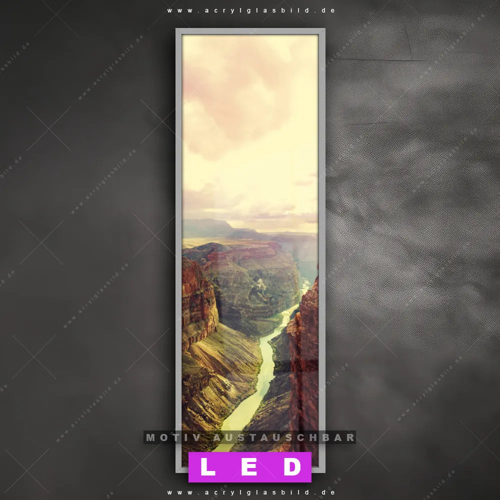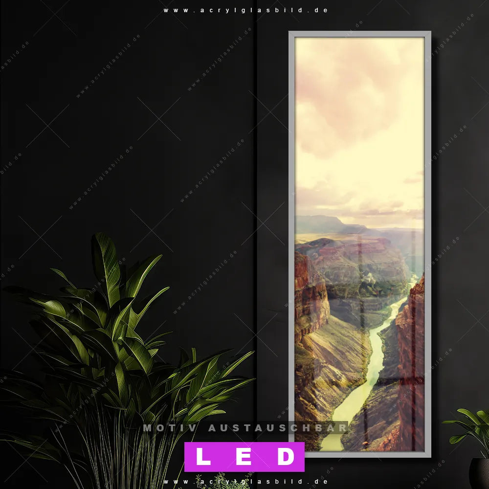 Bist du bereit, deine Wände mit einem dimmbaren LED Bild mit Fernbedienung und optionaler Farbtemperatursteuerung auf das nächste Level zu bringen? Unser Landschaften Canvalight® DIA LED Acrylglasbild ist genau das, was du brauchst! Das Wandbild mit LED Beleuchtung im Schmalen Format mit austauschbarer bedruckter Acrylglas-Scheibe Grand Canyon Landschaft bringt Licht und Stil in dein Zuhause – und das in null Komma nichts!