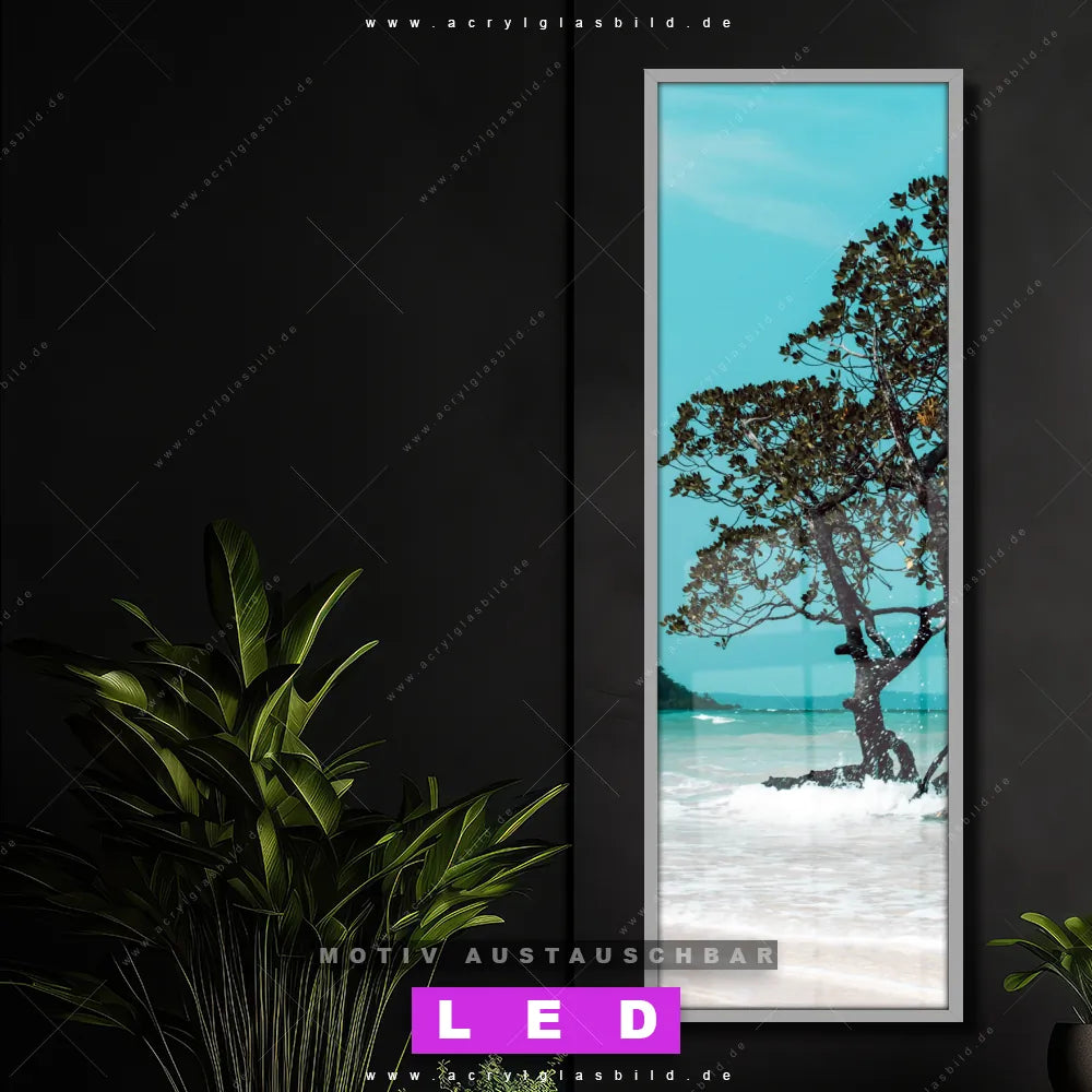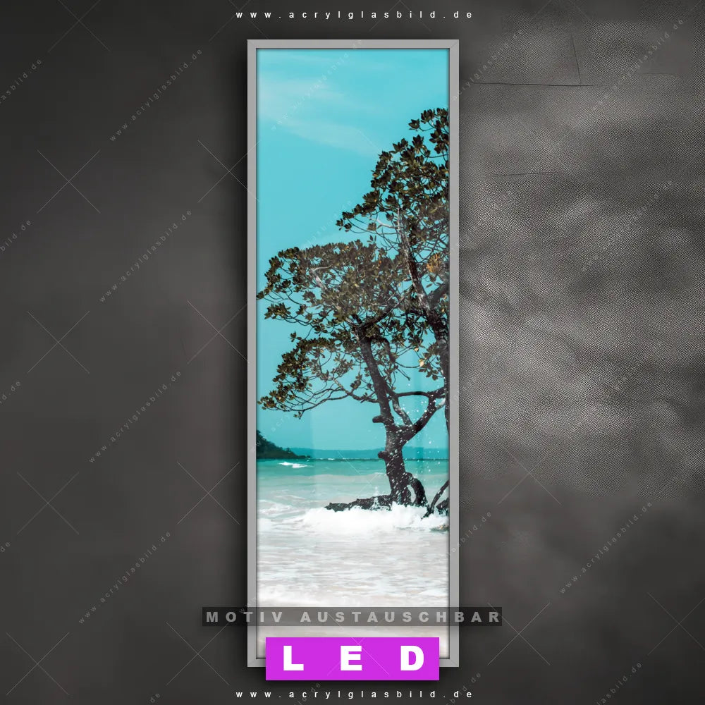 Bist du bereit, deine Wände mit einem dimmbaren LED Bild mit Fernbedienung und optionaler Farbtemperatursteuerung auf das nächste Level zu bringen? Unser Strand - Meer, Landschaften Canvalight® DIA LED Acrylglasbild ist genau das, was du brauchst! Das Wandbild mit LED Beleuchtung im Schmalen Format mit austauschbarer bedruckter Acrylglas-Scheibe Mangrovenbaum im Wasser bringt Licht und Stil in dein Zuhause – und das in null Komma nichts!