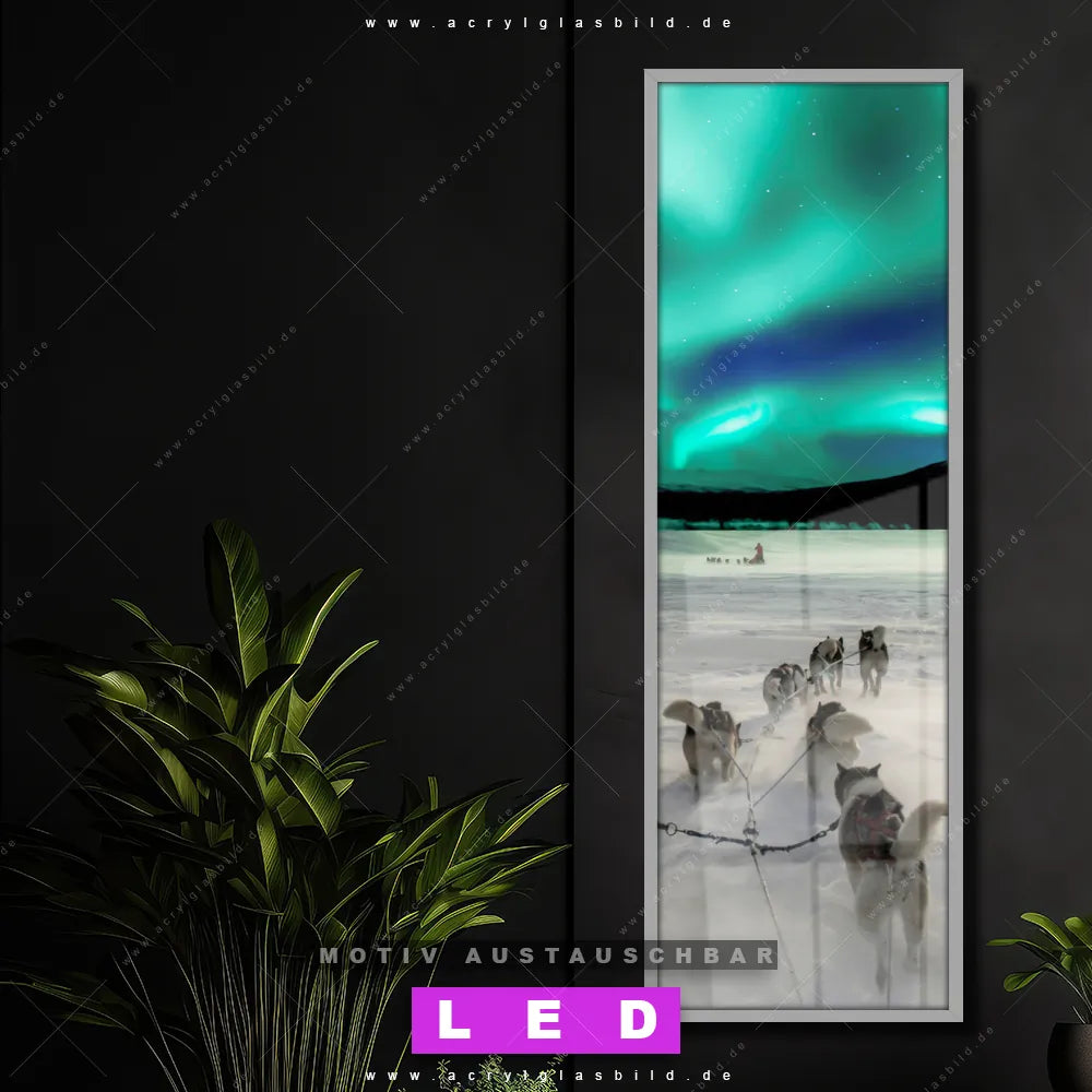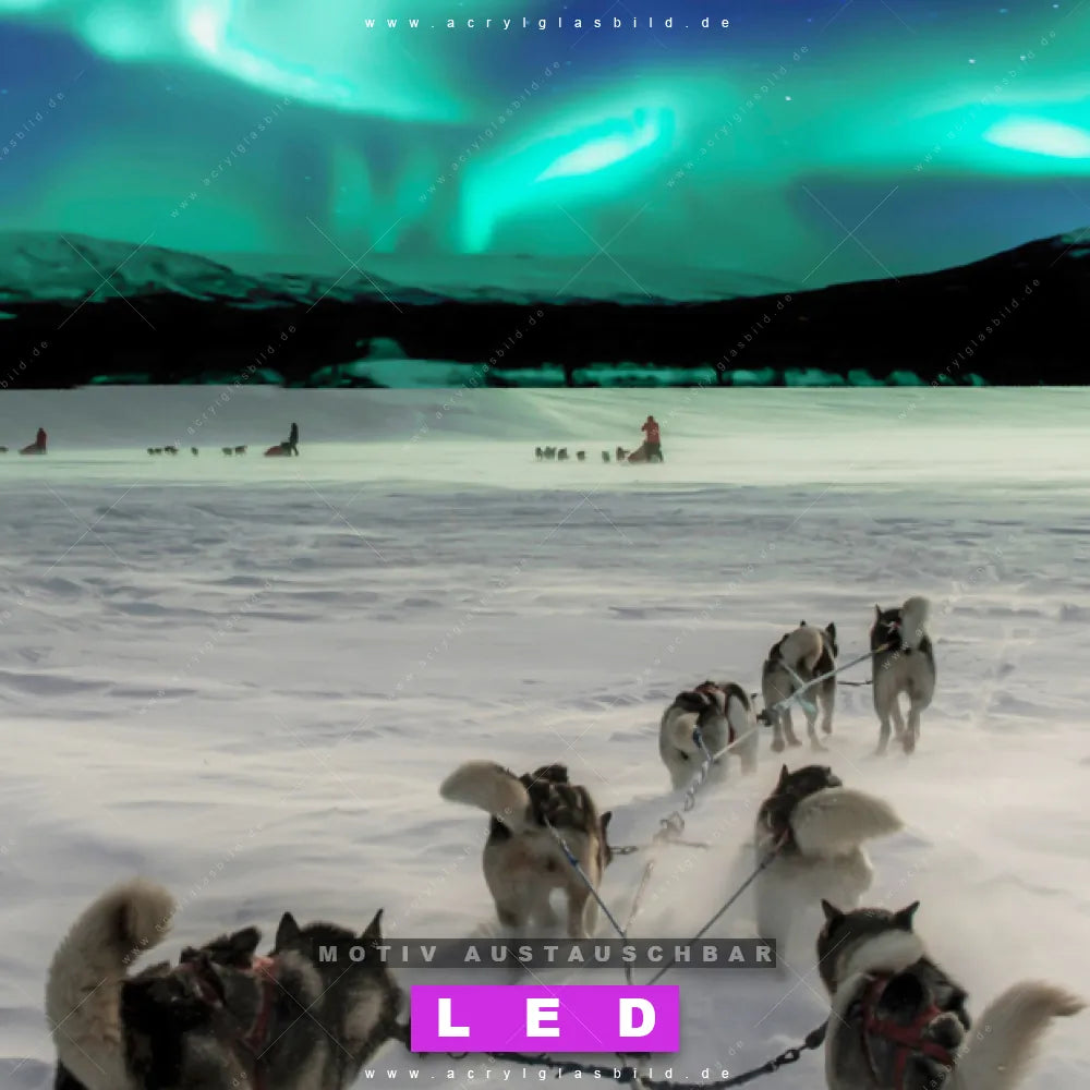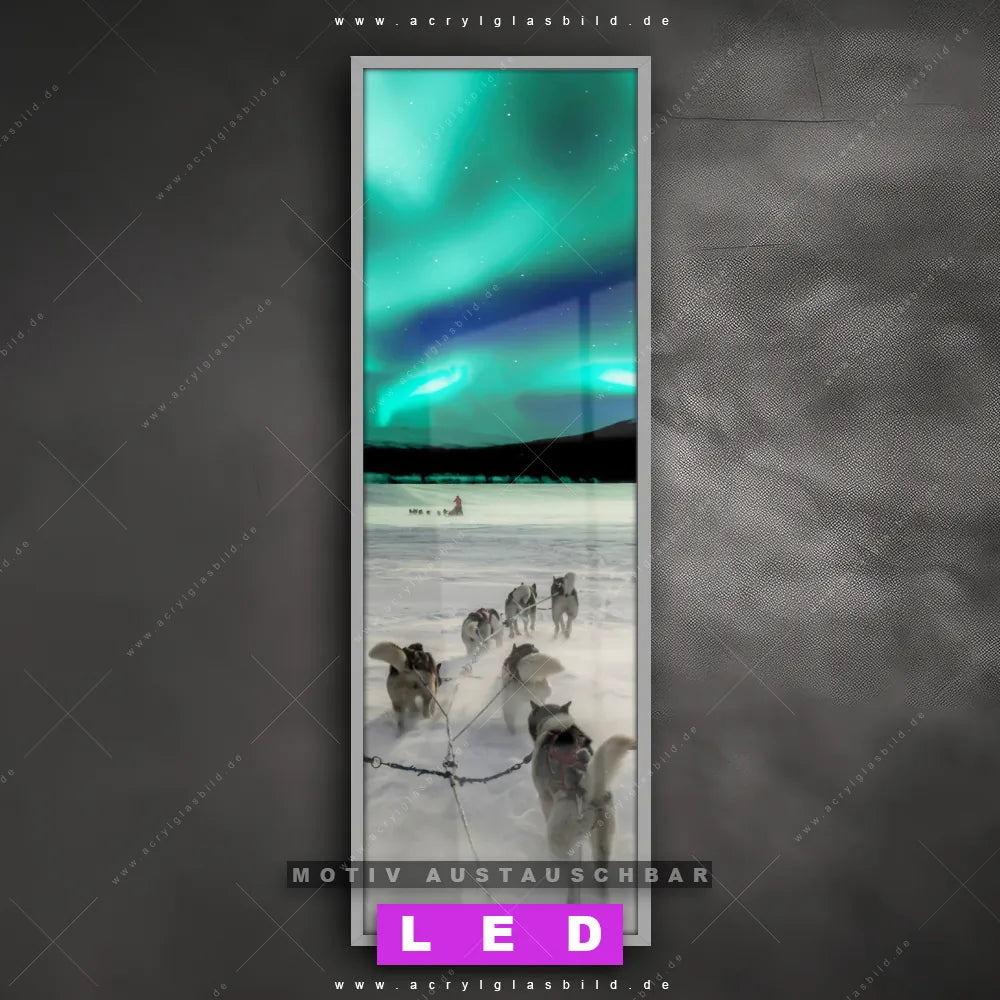 LED Acrylglasbild Canvalight® DIA | Nordlichter und Schlittenhunde | Schmal