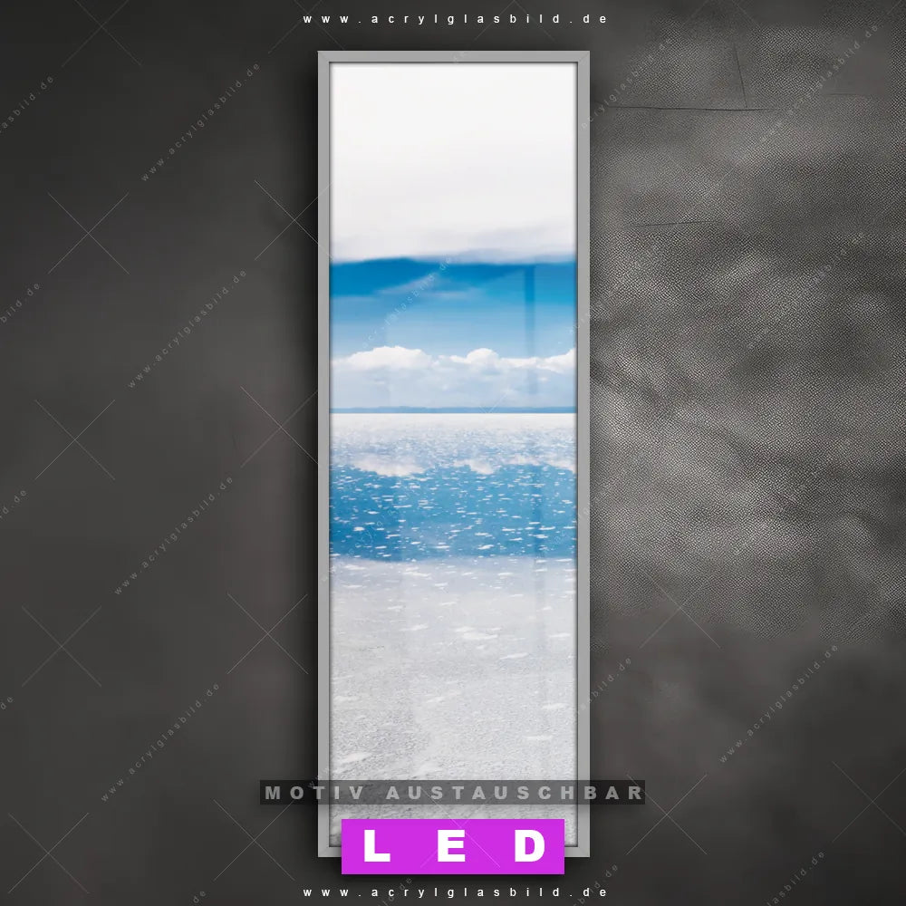Bist du bereit, deine Wände mit einem dimmbaren LED Bild mit Fernbedienung und optionaler Farbtemperatursteuerung auf das nächste Level zu bringen? Unser Landschaften Canvalight® DIA LED Acrylglasbild ist genau das, was du brauchst! Das Wandbild mit LED Beleuchtung im Schmalen Format mit austauschbarer bedruckter Acrylglas-Scheibe Salzsee in Bolivien bringt Licht und Stil in dein Zuhause – und das in null Komma nichts!