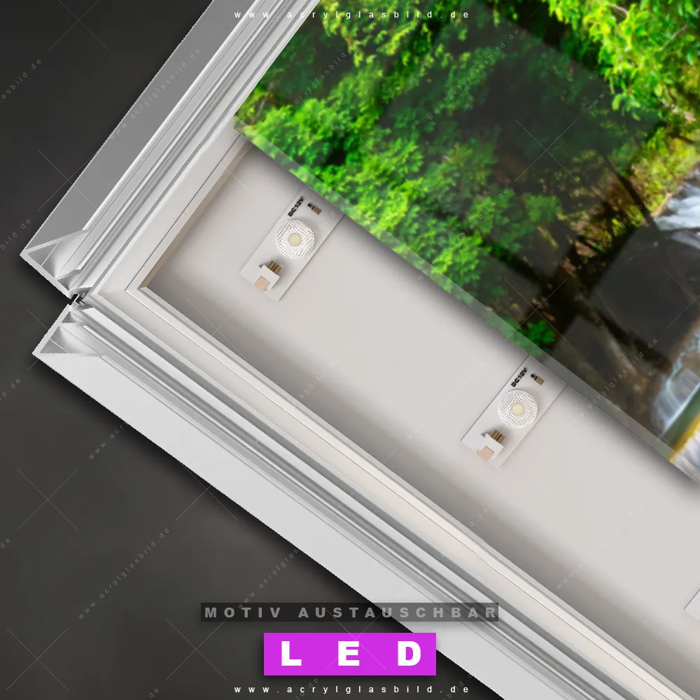 Also, warum noch zögern? Mach deine Wände mit einem Leuchtbild zum absoluten Hingucker und bestelle jetzt das Canvalight® DIA LED Acrylglasbild Sommerwald mit Wasserfällen. Deine Wände werden leuchten, und deine Freunde werden dank der wechselbaren Motive beeindruckt sein!