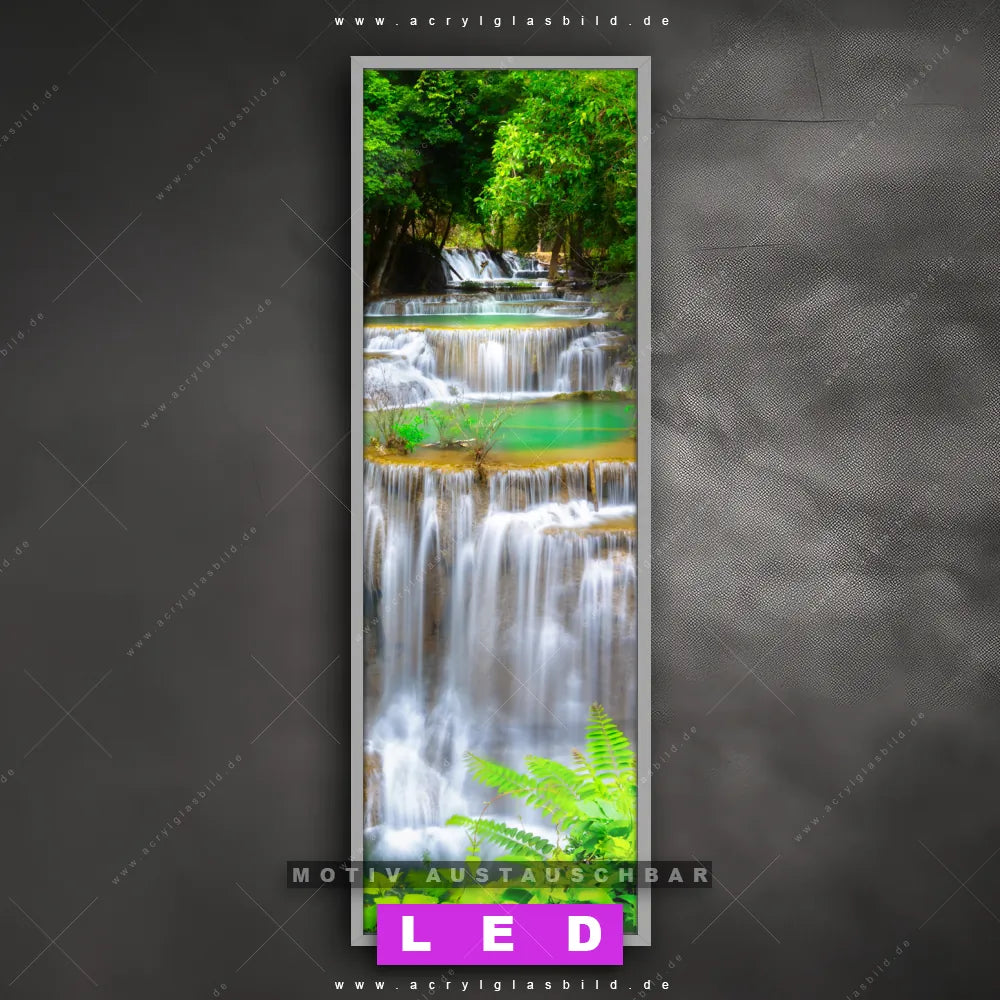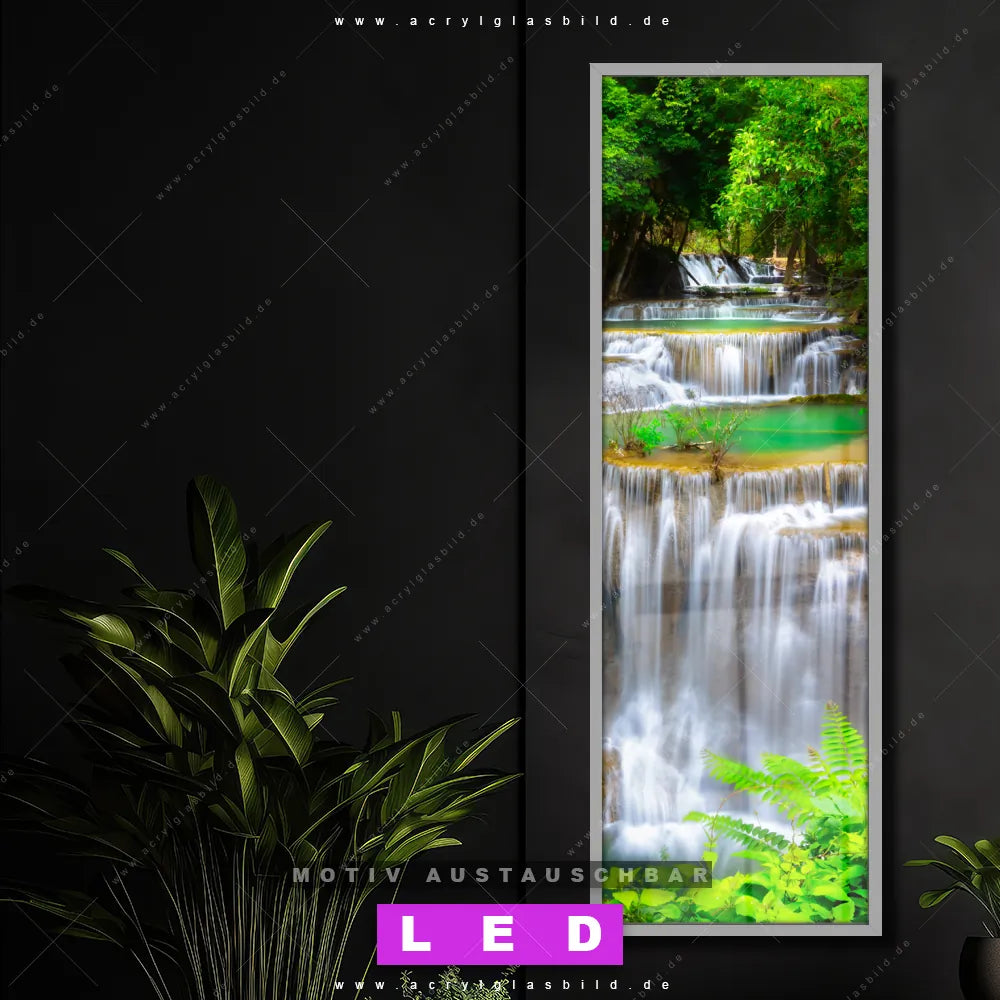 Bist du bereit, deine Wände mit einem dimmbaren LED Bild mit Fernbedienung und optionaler Farbtemperatursteuerung auf das nächste Level zu bringen? Unser Landschaften Canvalight® DIA LED Acrylglasbild ist genau das, was du brauchst! Das Wandbild mit LED Beleuchtung im Schmalen Format mit austauschbarer bedruckter Acrylglas-Scheibe Wald & Wasserfall No. 6 bringt Licht und Stil in dein Zuhause – und das in null Komma nichts!