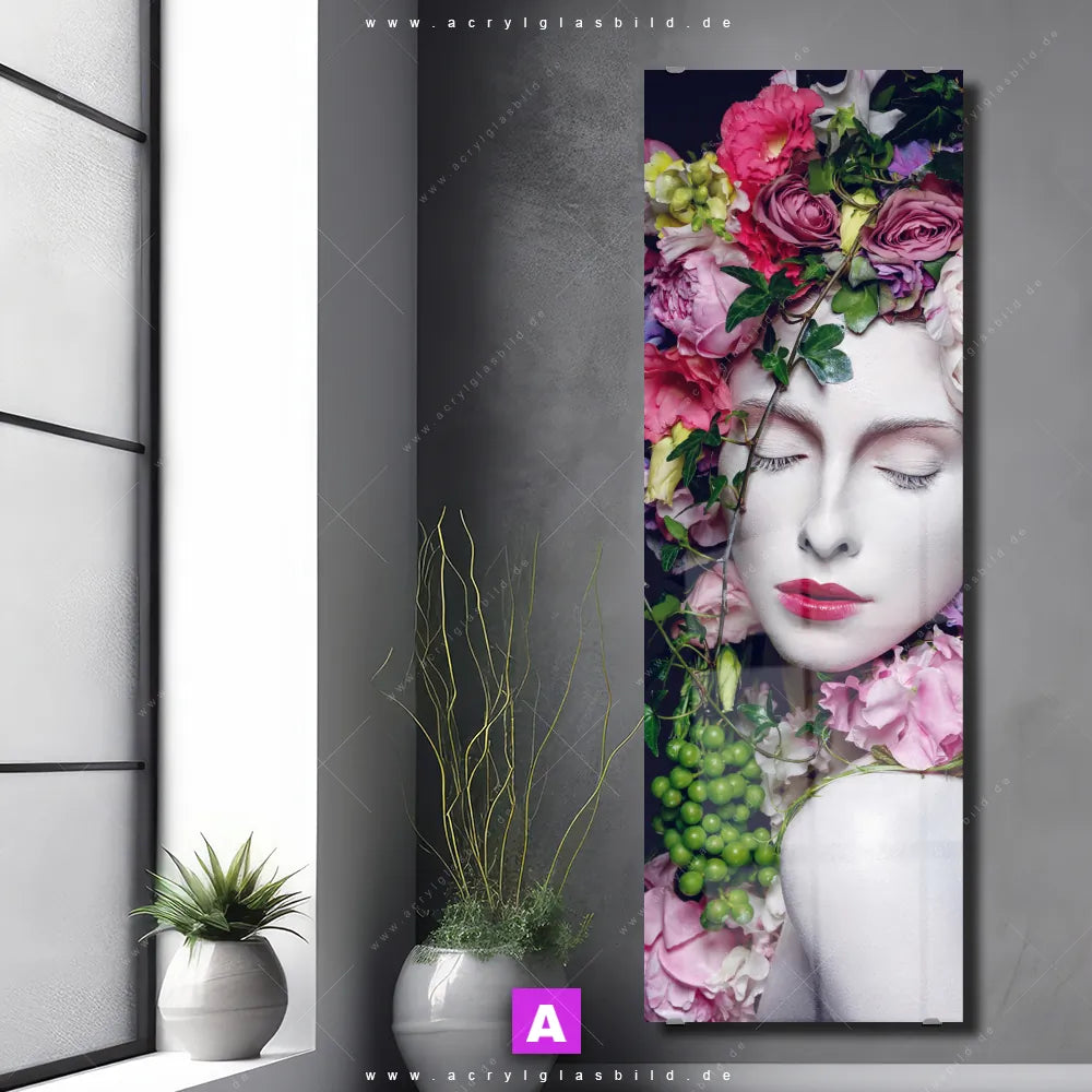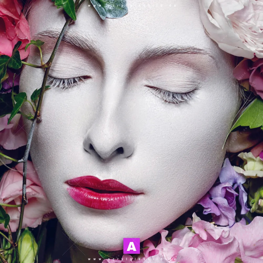 Vergiss also langweilige weiße Wände und entscheide dich für das Acrylglasbild Frauenporträt mit Blumen, gestaltet als Fotografie, das deinem Raum Charakter verleiht und dich jeden Tag aufs Neue inspiriert. Mit diesem Porträts - Menschen, Blumen - Botanik Acrylglasbild wird deine Wand zur Kunst und du zum Kunstliebhaber.