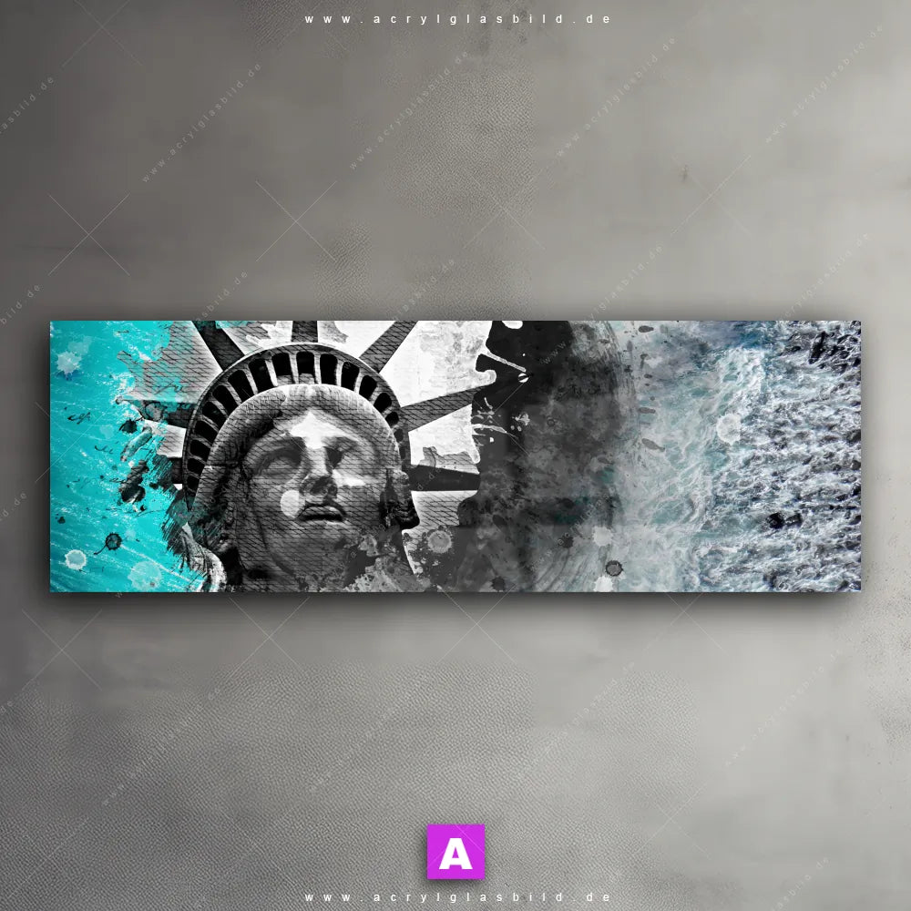 Begriffe wie Grunge, Streetart, modern, Freiheitsstatue, Statue of Liberty, Amerika, USA, Meer, Ozean, Wellen haben Dich auf der Suche nach Deinem neuen Wandbild aus Acrylglas inspiriert? Dann sollte das Acrylglasbild Freiheitsstatue in der Meeresbrandung den Weg zu Dir finden.