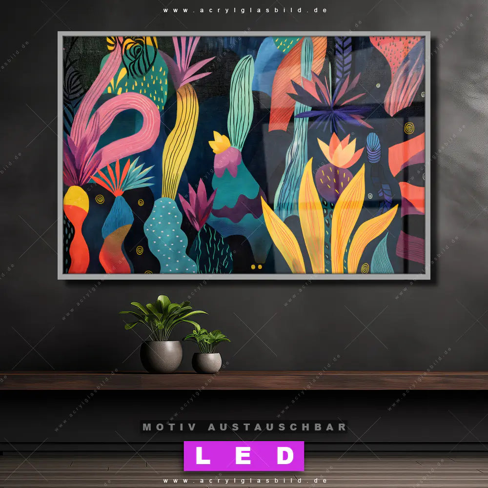 Begriffe wie Natur, Pflanzen, Kakteen, Blätter, Flora haben dich auf der Suche nach deinem neuen LED Wandbild aus Acrylglas inspiriert? Dann sollte das LED Acrylglasbild Farbenfrohe Pflanzen-Vielfalt den Weg zu dir finden.