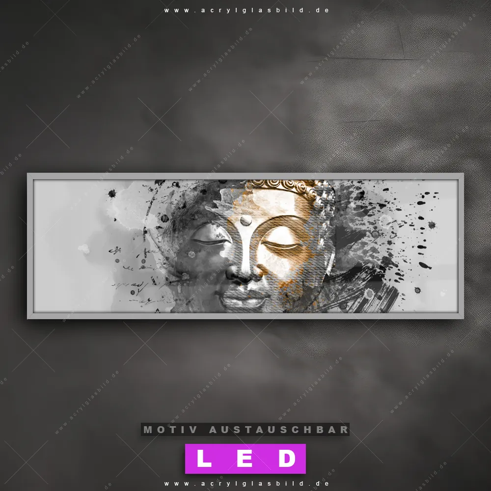 Deine Wände könnten dringend ein dimmbares LED Bild mit Fernbedienung und optionaler Farbtemperatursteuerung gebrauchen? Dann haben wir das perfekte Wandbild mit LED Beleuchtung für dich: unser mega-cooles Buddha - Feng Shui Canvalight® DIA LED Acrylglasbild! Mit unserem angesagten Leuchtbild aus Acrylglas im Panorama-Format und der austauschbaren bedruckten Acrylglas-Scheibe Buddha - Grunge-Stil bringst du nicht nur Licht, sondern auch jede Menge Flair in deine Räume.