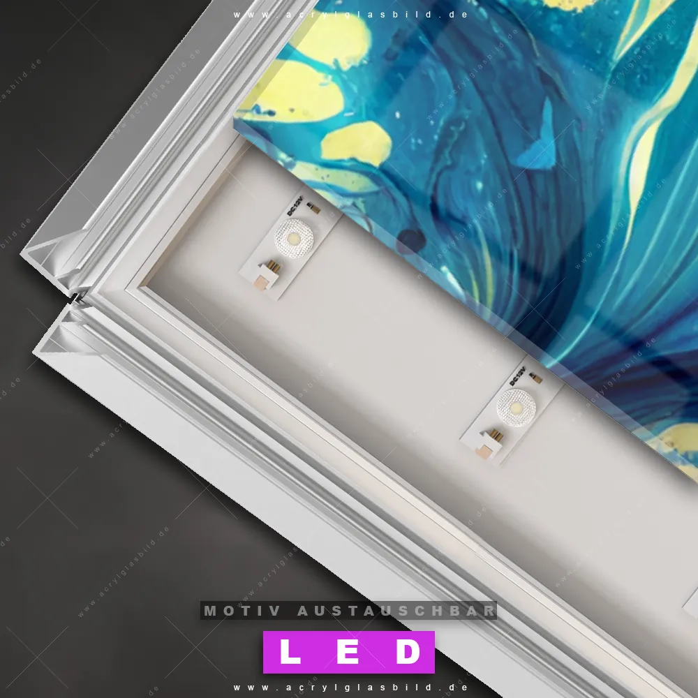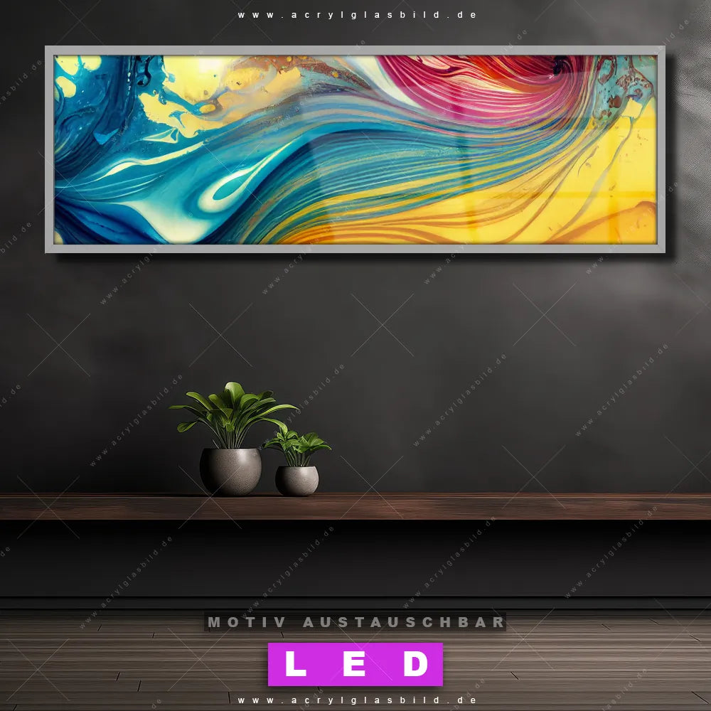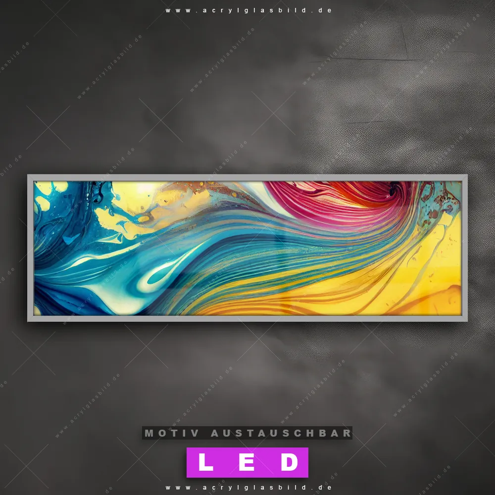 Wer will schon dunkle, triste Wände? Mit unserem LED Acrylglasbild Canvalight® DIA Fluid Painting Sand und Meer und seiner fantastischen LED-Ausleuchtung werden deine Wände in Büro - Kanzlei, Wohnzimmer - Schlafzimmer, Bar - Gastronomie, Flur - Eingangsbereich zu echten Hinguckern. Wenn du auf der Suche nach einem beleuchteten Wandbild aus Acrylglas mit Flüssigkeit, Acryl, flüssig, Farbe, Marmorierung, Fluid Art bist, dann solltest du unser LED Leuchhtbild Abstrakte Stranddarstellung mit den beeindruckenden Motiv-Farben Rot, Blau, Gelb , Orange, Hellblau, Weiss nicht verpassen. Gestaltet im angesagten Abstrakt, Modern Art Stil, passt das LED Bild mit DIA-Klapprahmen und wechselbarer Acrylglas-Scheibe perfekt zu jedem Einrichtungsstil – selbst in deinem kleinen Dschungel aus Kreativität und Chaos!