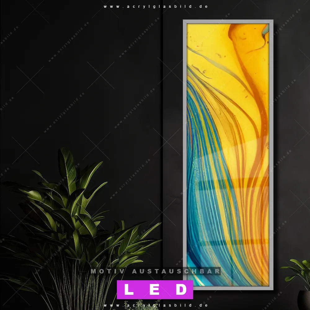 Bist du bereit, deine Wände mit einem dimmbaren LED Bild mit Fernbedienung und optionaler Farbtemperatursteuerung auf das nächste Level zu bringen? Unser Muster - Texturen, Strand - Meer Canvalight® DIA LED Acrylglasbild ist genau das, was du brauchst! Das Wandbild mit LED Beleuchtung im Schmalen Format mit austauschbarer bedruckter Acrylglas-Scheibe Fluid Art - Am Strand bringt Licht und Stil in dein Zuhause – und das in null Komma nichts!