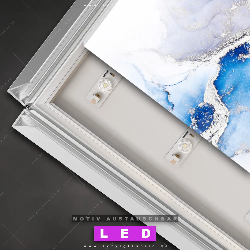 Also, worauf wartest du noch? Gib mit einem beleuchteten Wandbild mit wechselbarer Acrylglas-Scheibe deinen Wänden das gewisse Etwas und bestelle jetzt das LED Acrylglasbild Canvalight® DIA abstrakte Winterlandschaft – dein Zuhause wird es dir danken und deine Freunde werden dank der wechselbaren Motive erblassen!