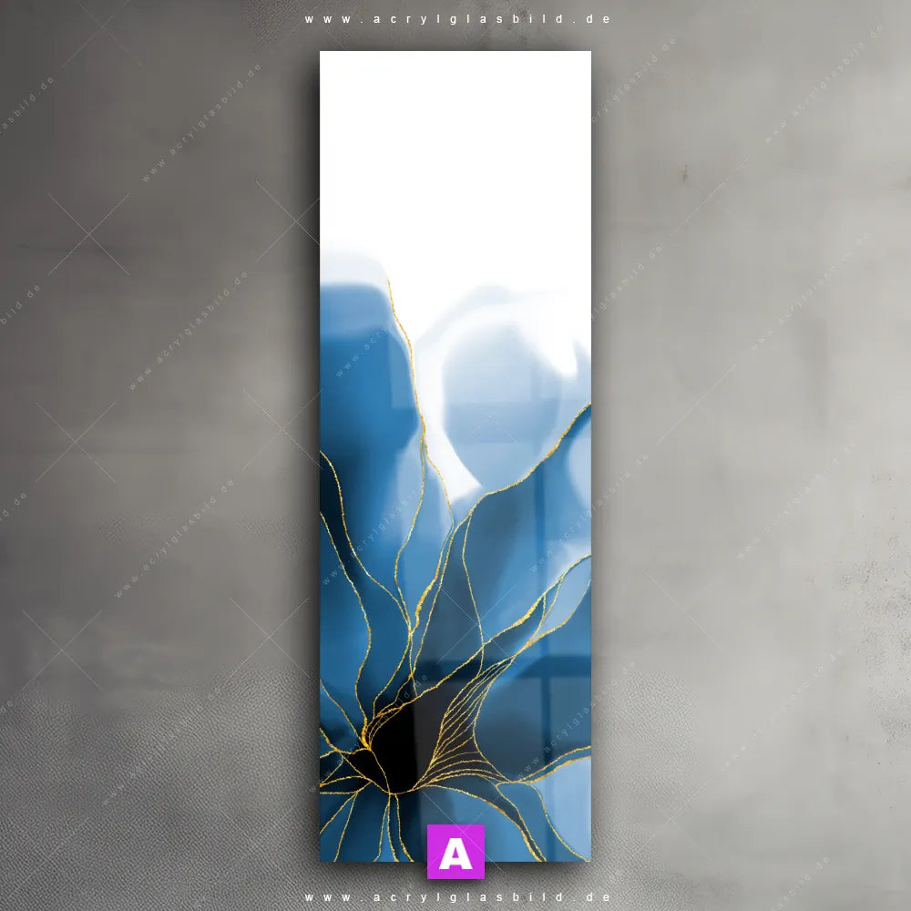 Die einzigartigen Farben in Weiss, Blau machen das Acrylglasbild blaue-weiße Blüte mit goldenen Akzenten mit Blume, Botanik, Pflanze, Natur, Aquarell, Wasserfarbe zu einem echten Hingucker. Egal ob deine Einrichtung minimalistisch, modern oder doch eher wild und ausgefallen ist - unser Acrylglasbild Blütenausschnitt im Modern Art, Abstrakt Stil passt immer, auch in Arzt - Praxis, Büro - Kanzlei, Wohnzimmer - Schlafzimmer, Friseur - Beauty, Küche - Esszimmer.